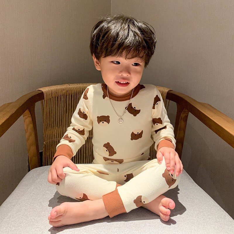 아동복 남아 홈웨어 세트 2025 가을 신상 아기 어린이 잠옷 유아 봄 가을 옷 투피스 세트스토어 가기