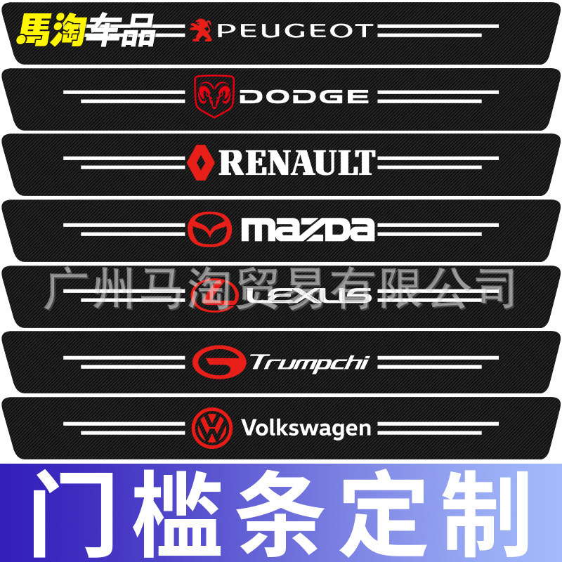 카실 바 도어 환영 페달 충돌 방지 바 트렁크 보호 스티커 탄소 섬유 질감 만화 자동차 로고 국경스토어 가기
