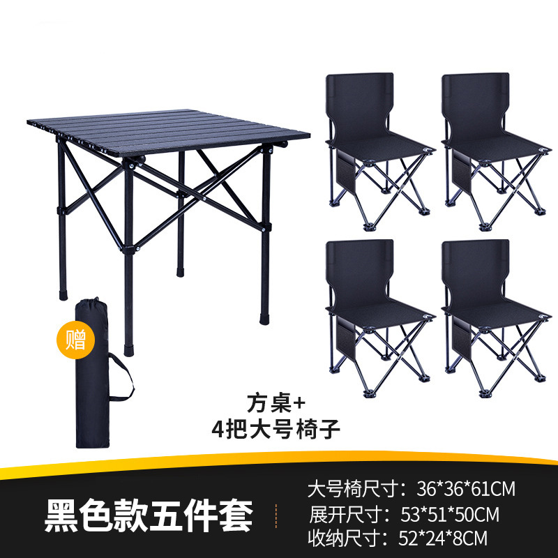 • 알루미늄 합금 검정 사각 테이블 + 의자 4 개 수납 가방 (인쇄 가능 로고)