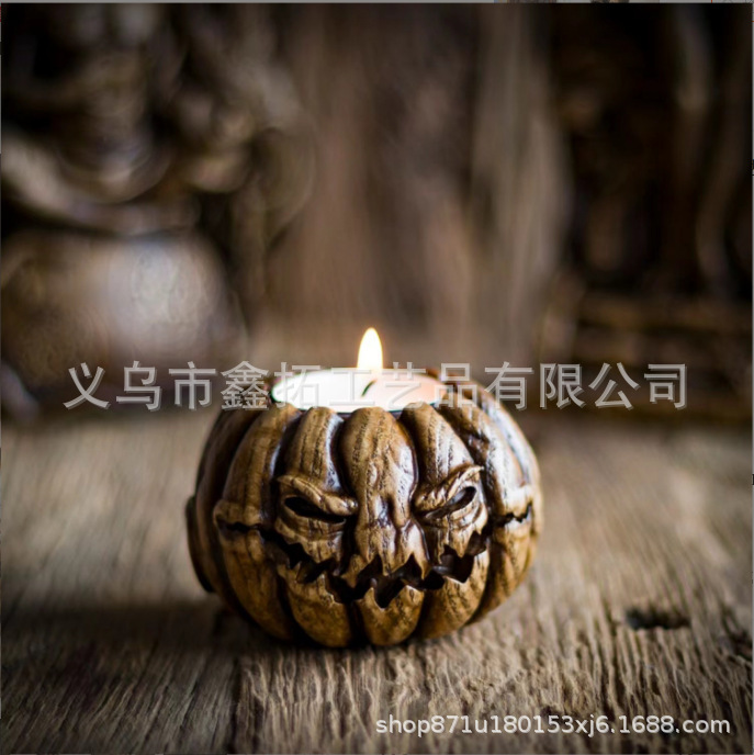 跨境万圣节南瓜烛台装饰品摆件设计氛围鬼屋恐怖古老南瓜摆件设计