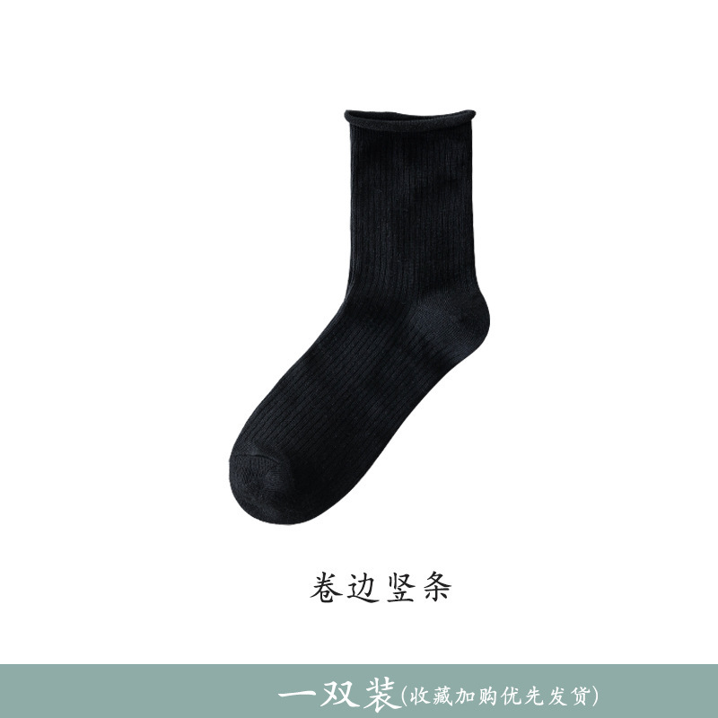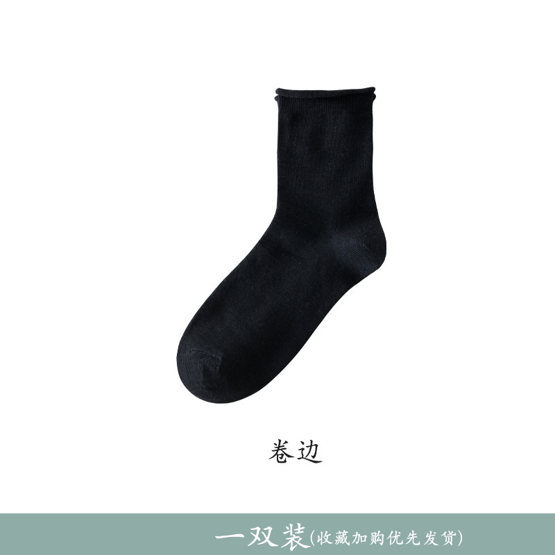 미드 튜브 양말 여성용 블랙 솔리드 컬러 양말 귀여운 일본식 봄과 가을 jk 양말 중간 길이 로리타 파일 양말 도매스토어 가기