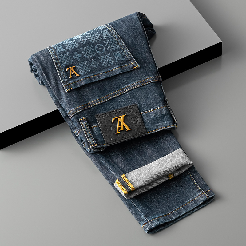 유럽 고급 자수 청바지 남자의 트렌디 브랜드 무거운 공예 밝은 색의 얇은 슬림 핏 데님 바지 남자의 트렌디스토어 가기