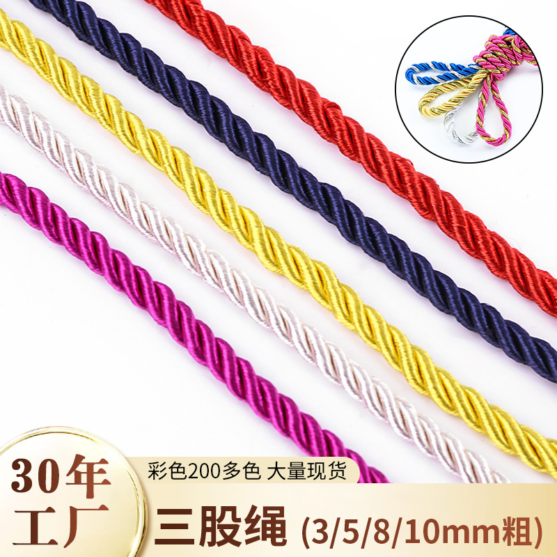 공장 도매 컬러 3 가닥 로프 코어 5mm 금 및 실버 폴리 에스터 짠 3 가닥 휴대용 로프 3 가닥 꼬인 로프