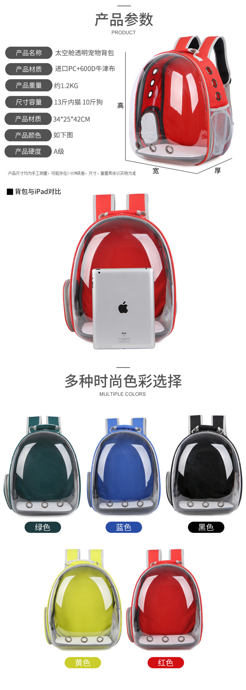 • 빨간색-13kg 고양이/10kg 개를 수용 할 수 있습니다.