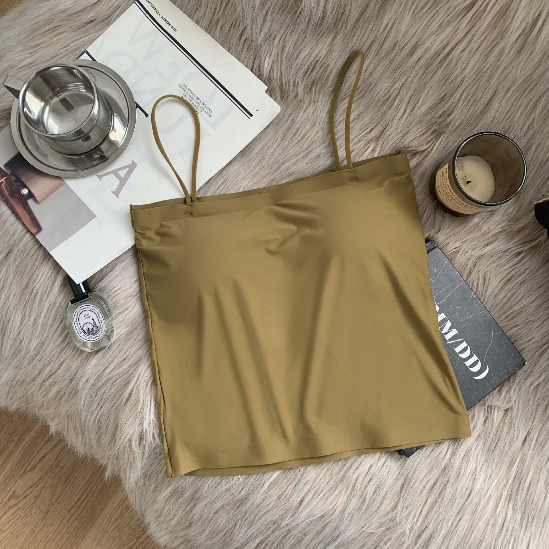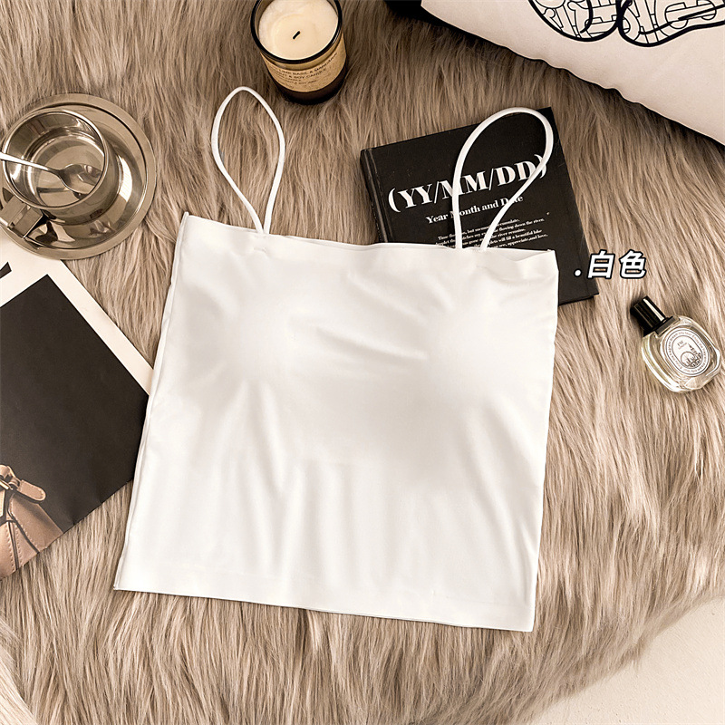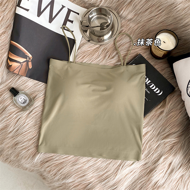 여름 원활한 아이스 실크 아름다운 백 캐미솔 여성 원피스 가슴 패드 바닥 내부 및 외부 착용 안티 라이트 튜브 탑스토어 가기