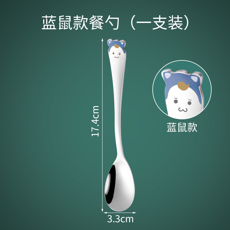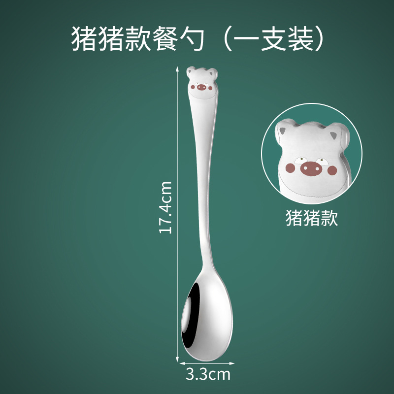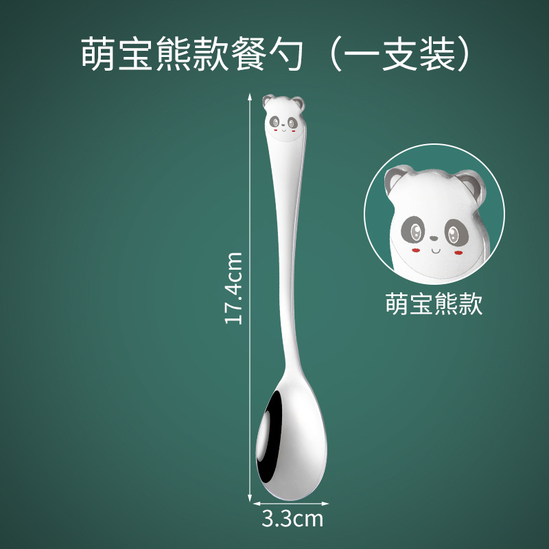 어린이가 집에서 식사할 때 사용하는 304 스테인레스 스틸 스푼, 긴 손잡이의 창의적인 밥솥, 귀여운 인터넷 연예인 만화 스푼 식기스토어 가기