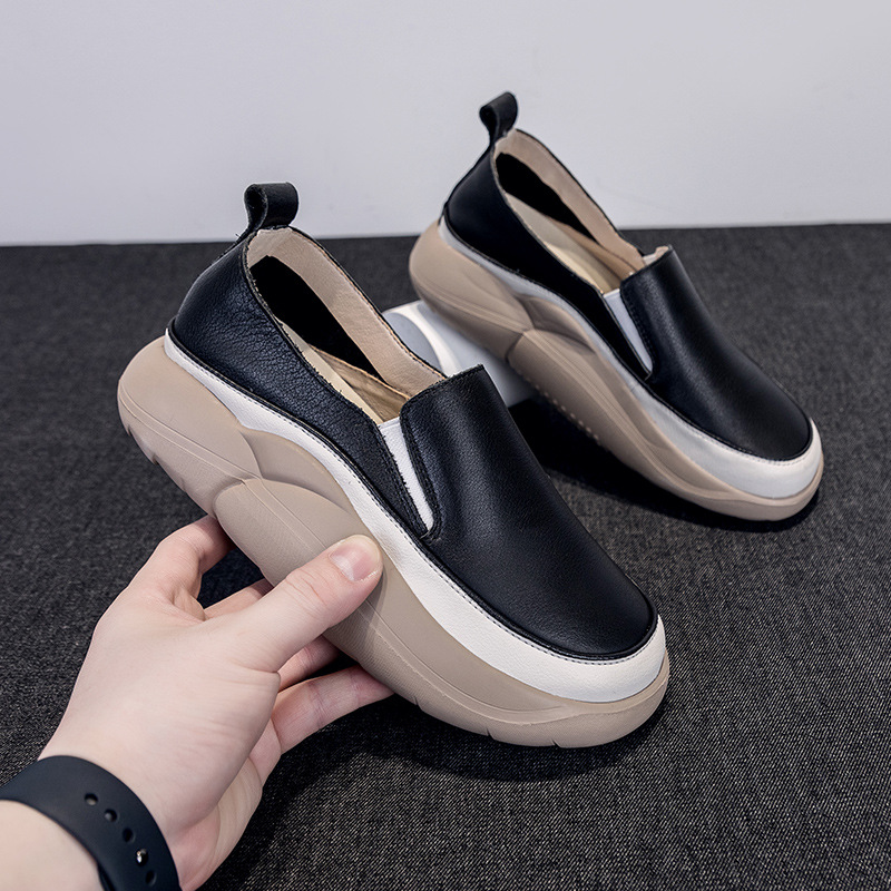 봄 새로운 가죽 플랫폼 신발 슬립 온 캐주얼 올 매치 로퍼 임산부 싱글 레이어 신발 소프트 가죽 빈티지 여성 신발