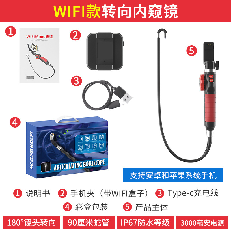 스티어링 내시경 HD 카메라 자동차 수리 산업용 파이프 라인 엔진 실린더 탄소 예금 검사 회전 프로브