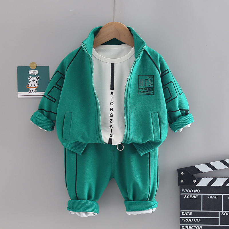 아동 캐주얼웨어 아동복 세트 소년의 가을 긴 소매 칼라 지퍼 가디건 스포츠웨어 재킷 쓰리피스 세트스토어 가기