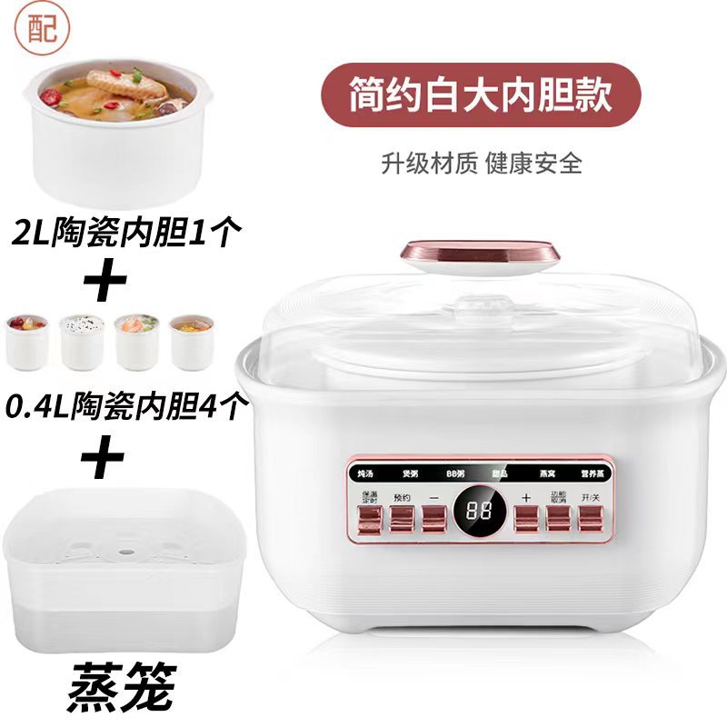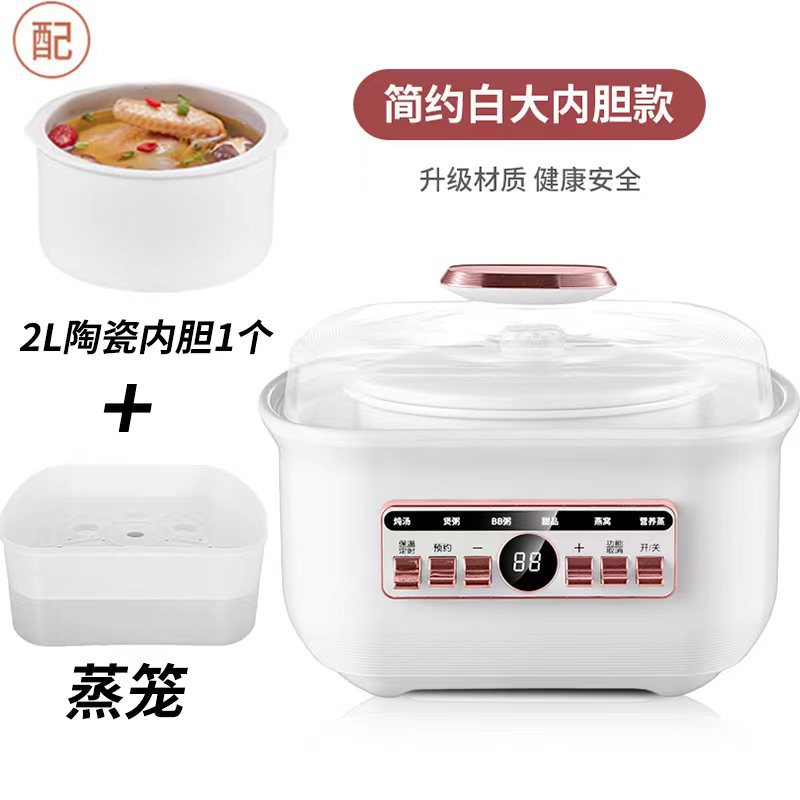 2L 전기 스튜 냄비 자동 가정용 전기 스튜 냄비 냄비에 물 새 둥지 스튜 냄비 냄비 컵 캐서롤 냄비 죽 냄비