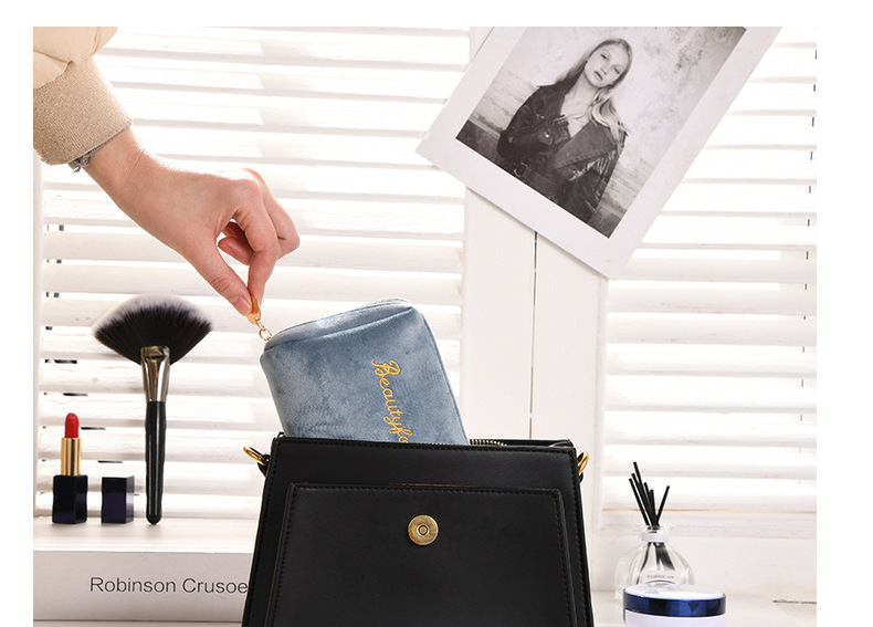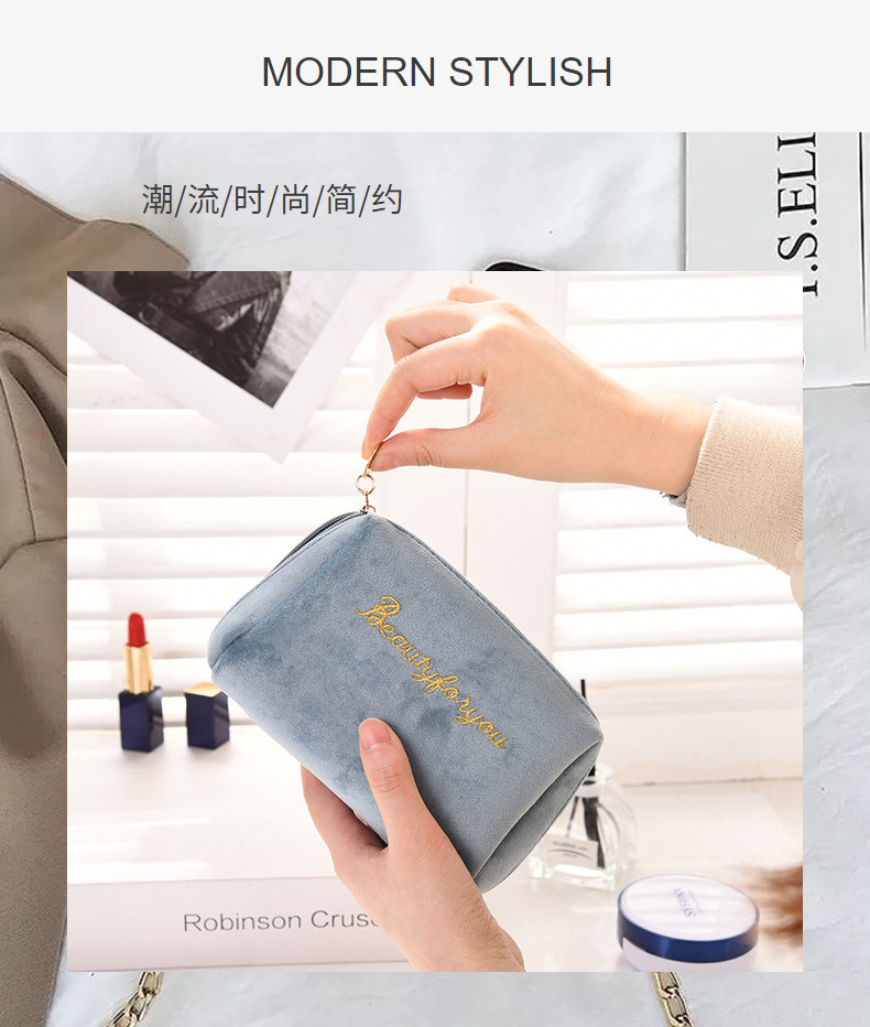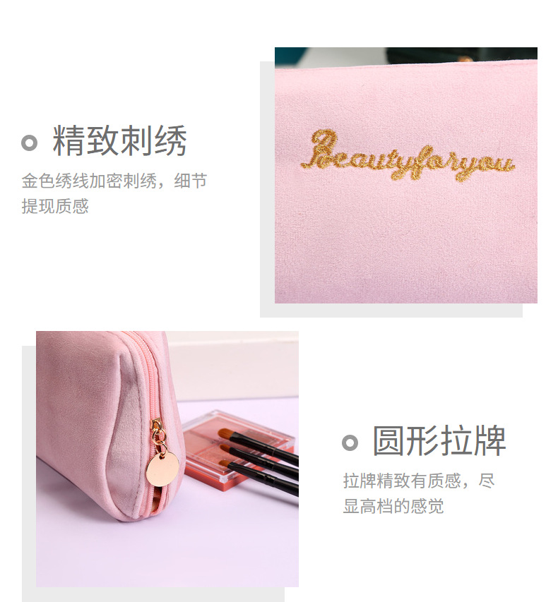 丝绒拉链手拿化妆袋刺绣圆筒口红收纳包化妆包大容量ins风高颜值 查看>