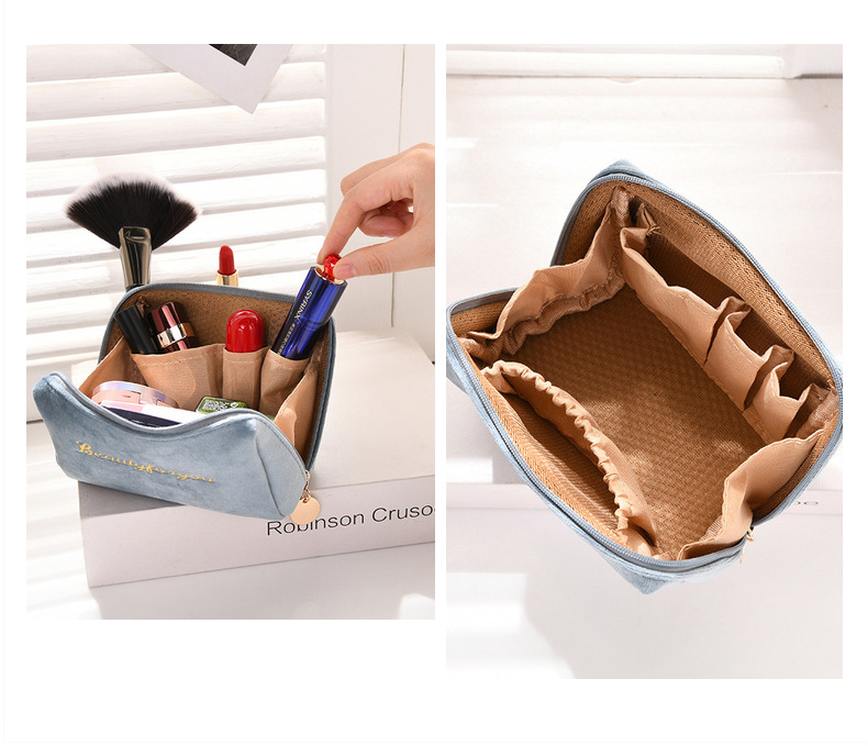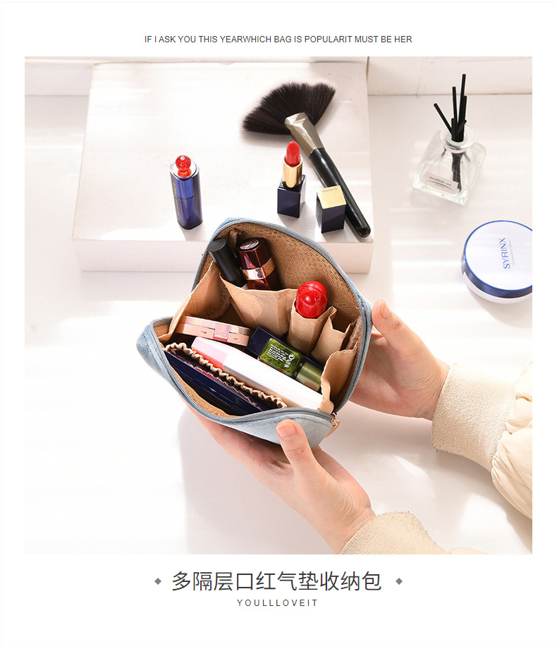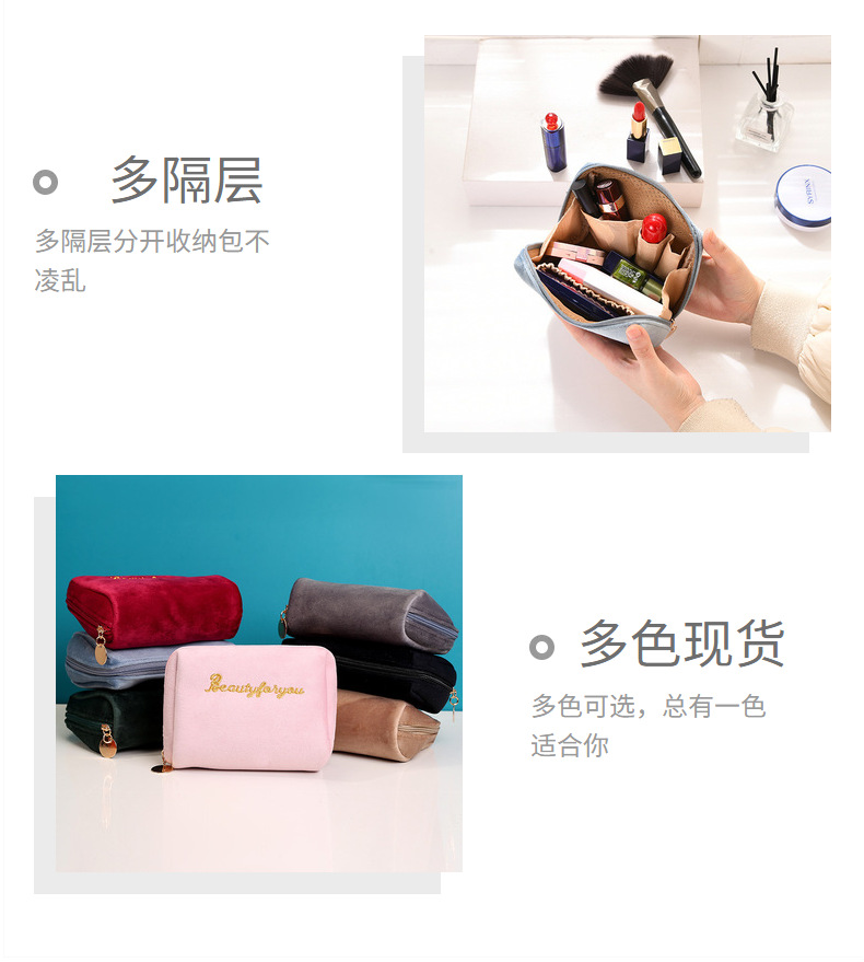 ins风便携化妆包多隔层口红收纳包随身丝绒便携补妆包