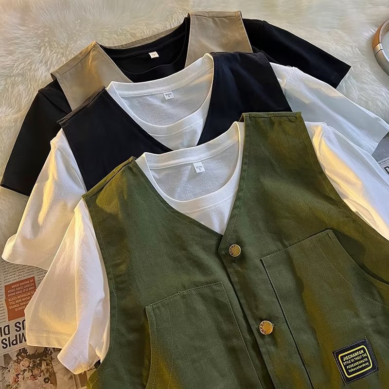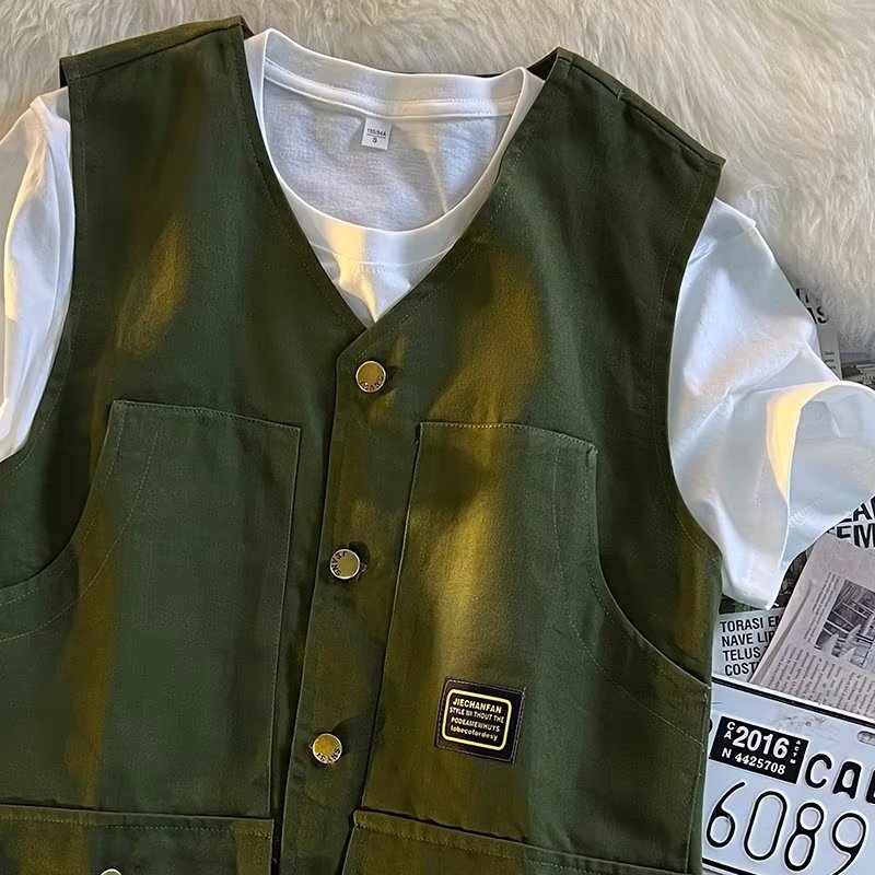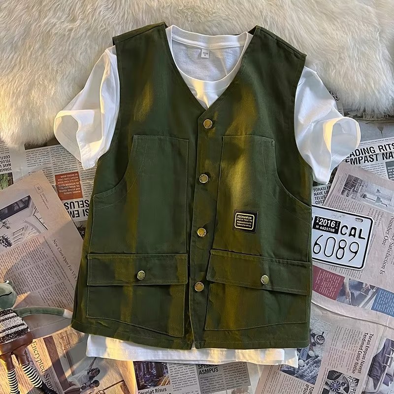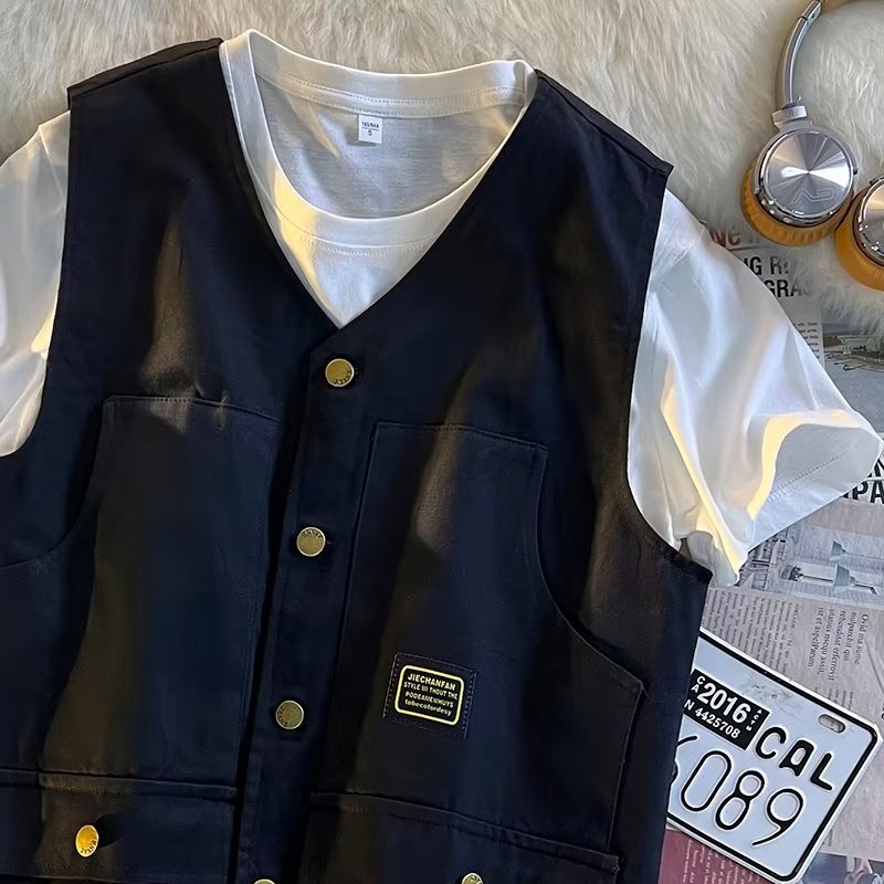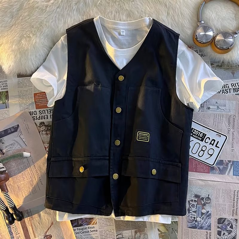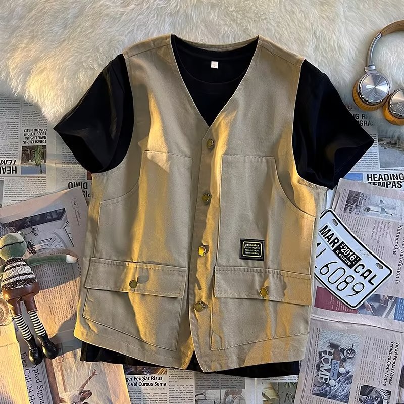 작업 조끼 남자 여름 새로운 유행 브랜드 복고풍 캐주얼 조끼 민소매 양복 조끼 겉옷 레이어드 조끼 탑스토어 가기