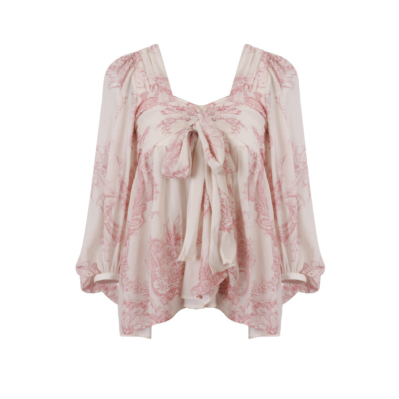 灯笼袖扣口用一粒扣固定,营造轻松惬意的氛围