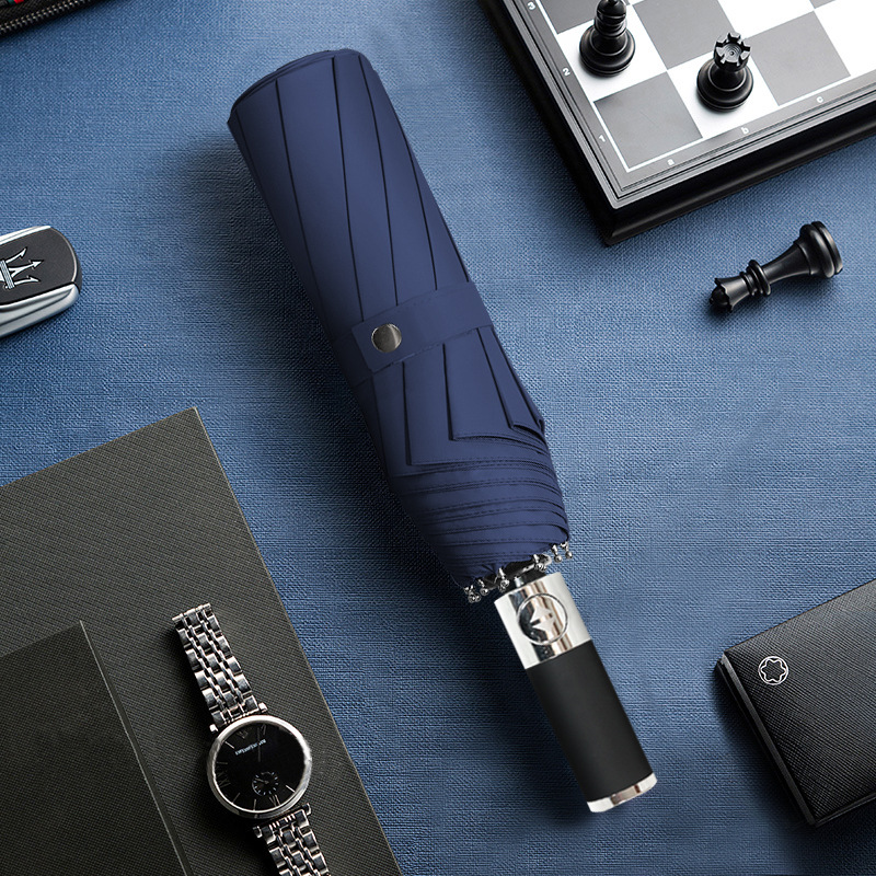 도매 10 골 검정 고무 자동 우산 맞춤 로고 인쇄 이중 목적 양산 우산 사업 선물 광고 우산스토어 가기