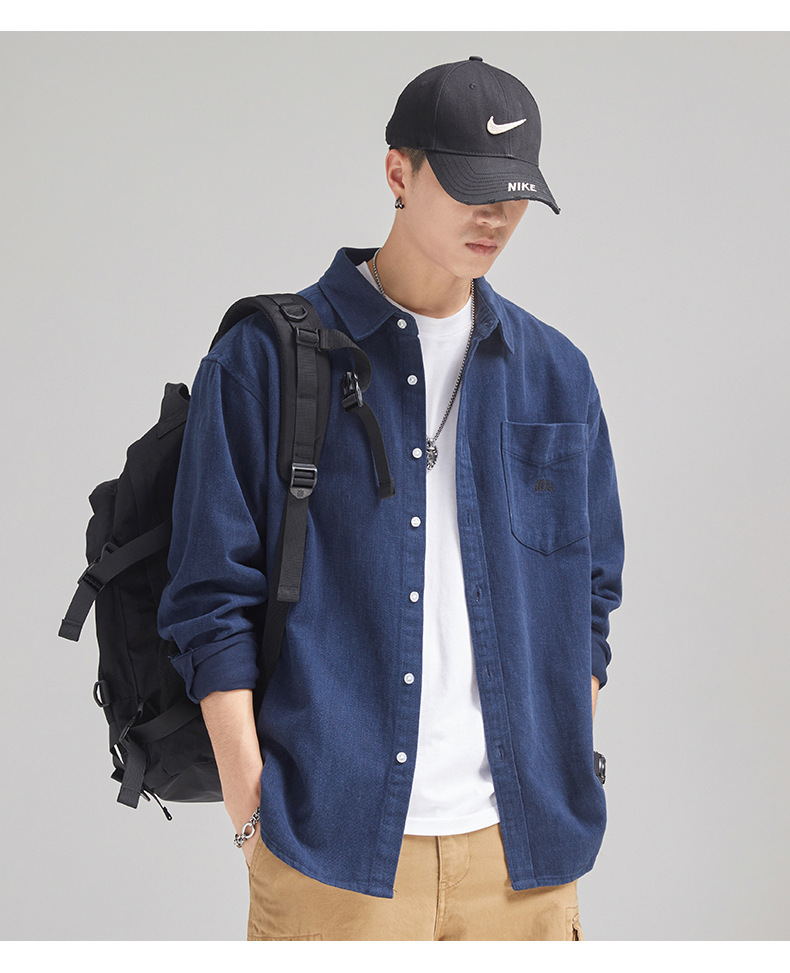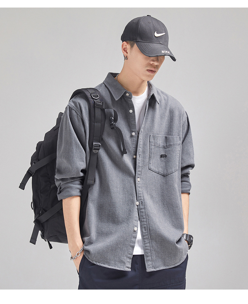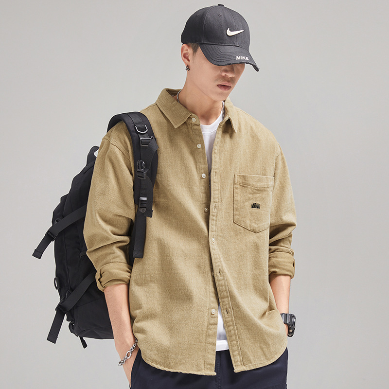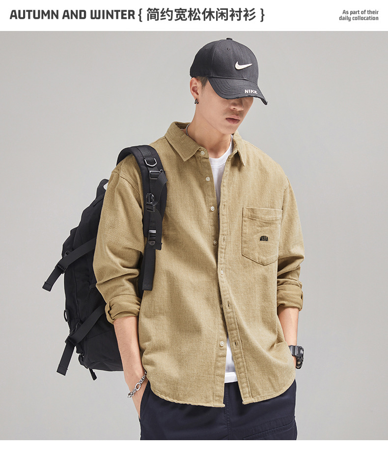LKTM 남성복 # 2024 초가을 신상 미국식 기모 순면 긴팔 셔츠 남성 트렌디 브랜드 레트로 루즈핏 셔츠스토어 가기