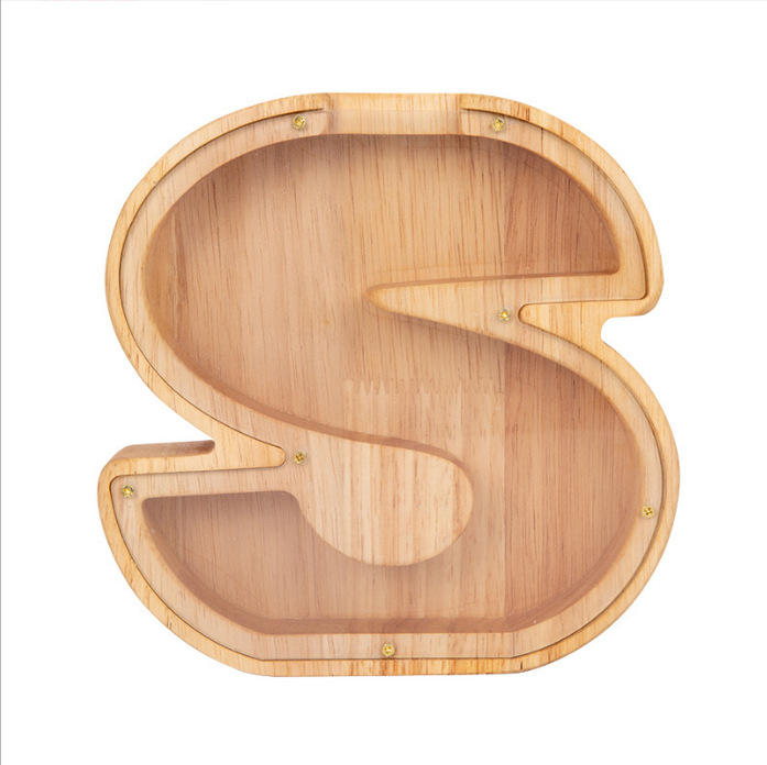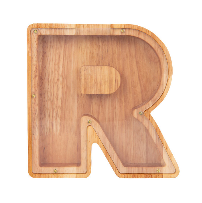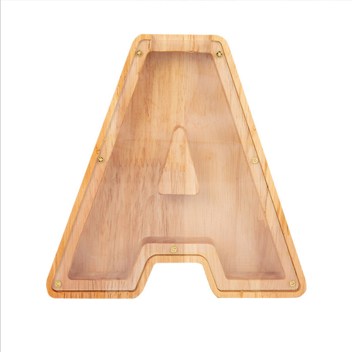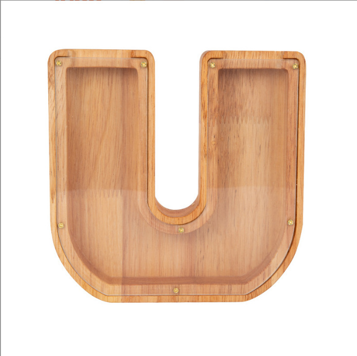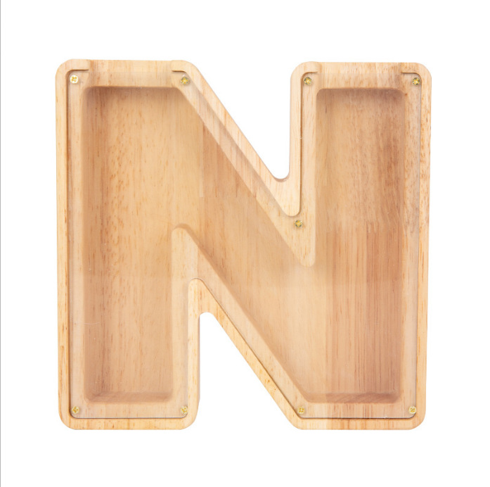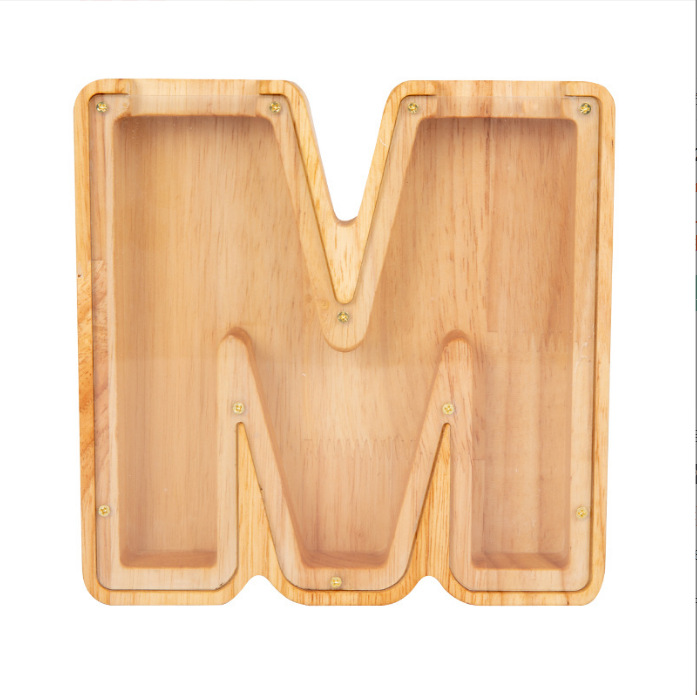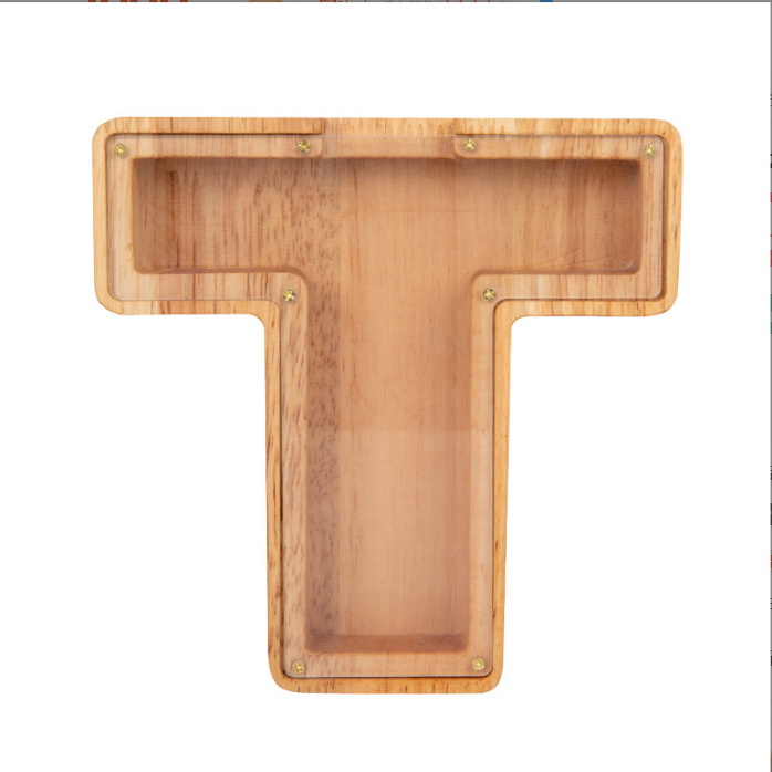 跨境新款创意二十六个英文字母带贴纸储钱罐木质存钱罐工艺品