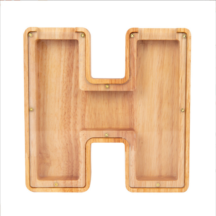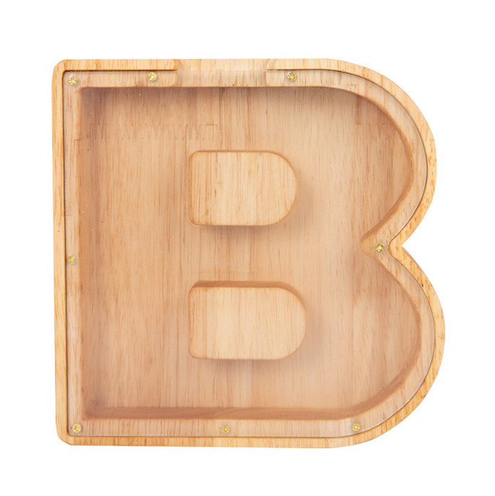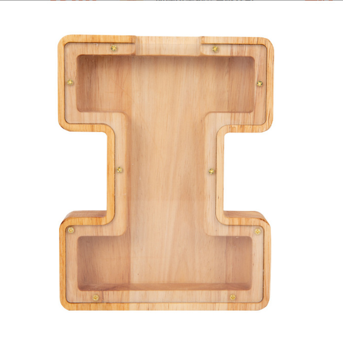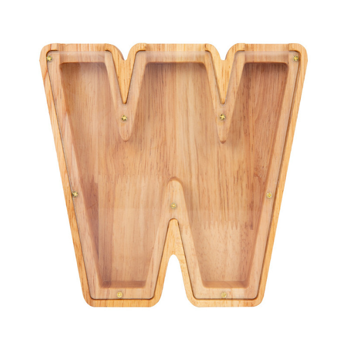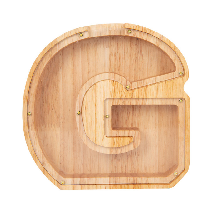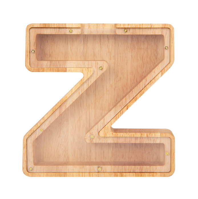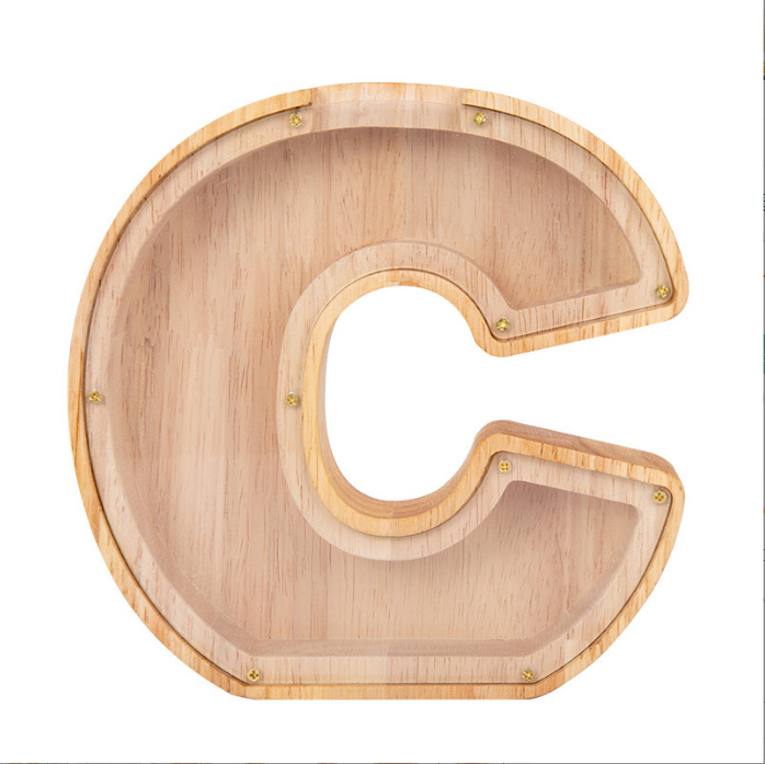 跨境新款创意二十六个英文字母带贴纸储钱罐木质存钱罐工艺品