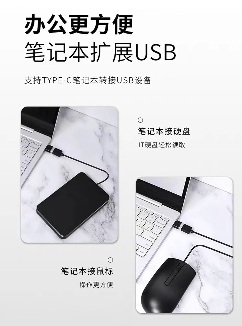 产品功能:用于数据传输,连接设备充电,接收鼠标键盘等。
