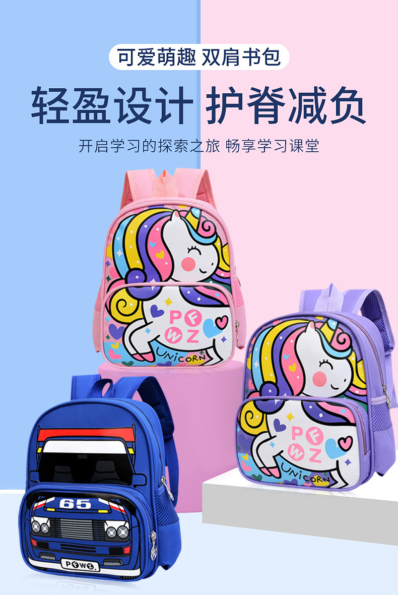 자동차 어린이 책가방 귀여운 만화 유치원 배낭 소년과 소녀 레저 책가방 어린이 배낭