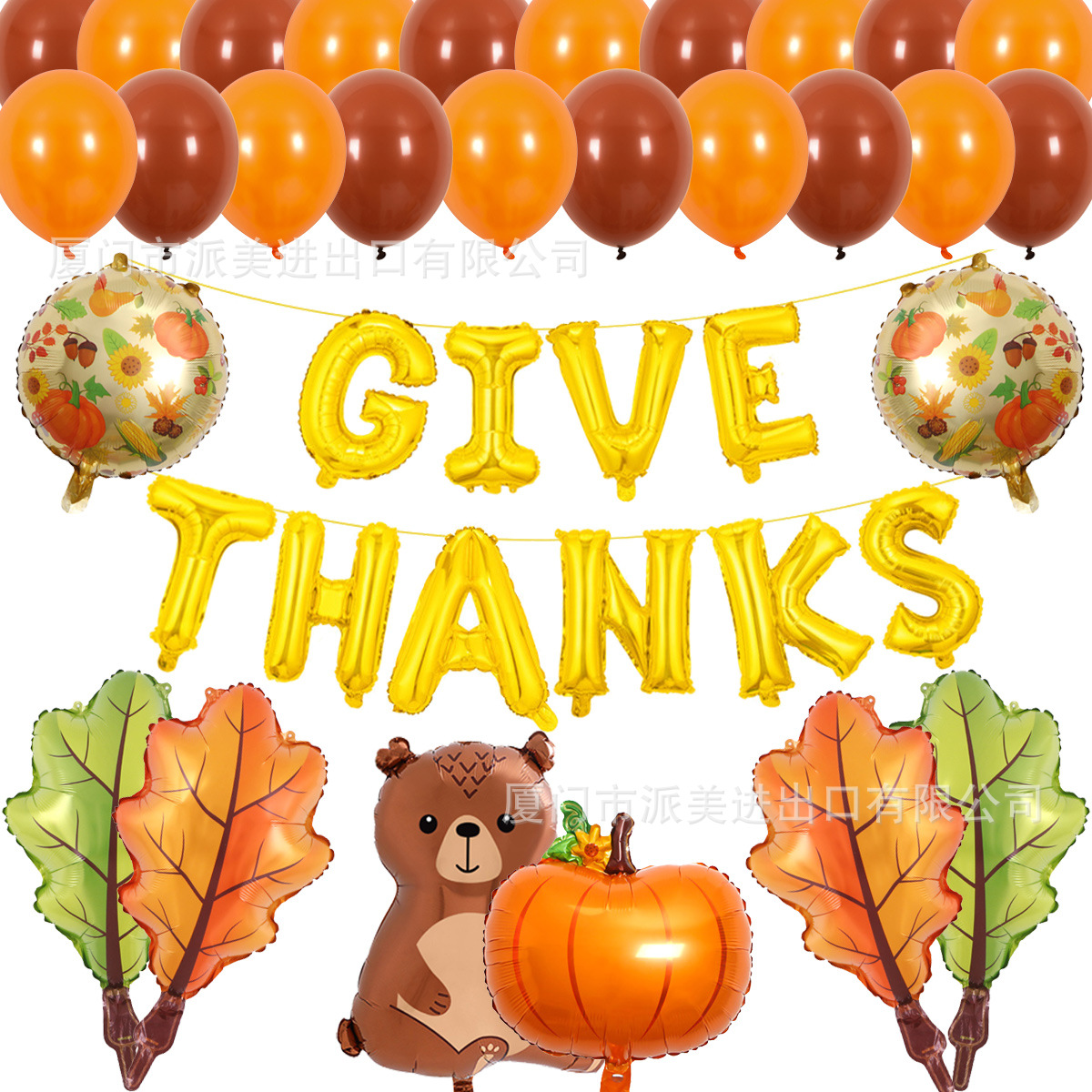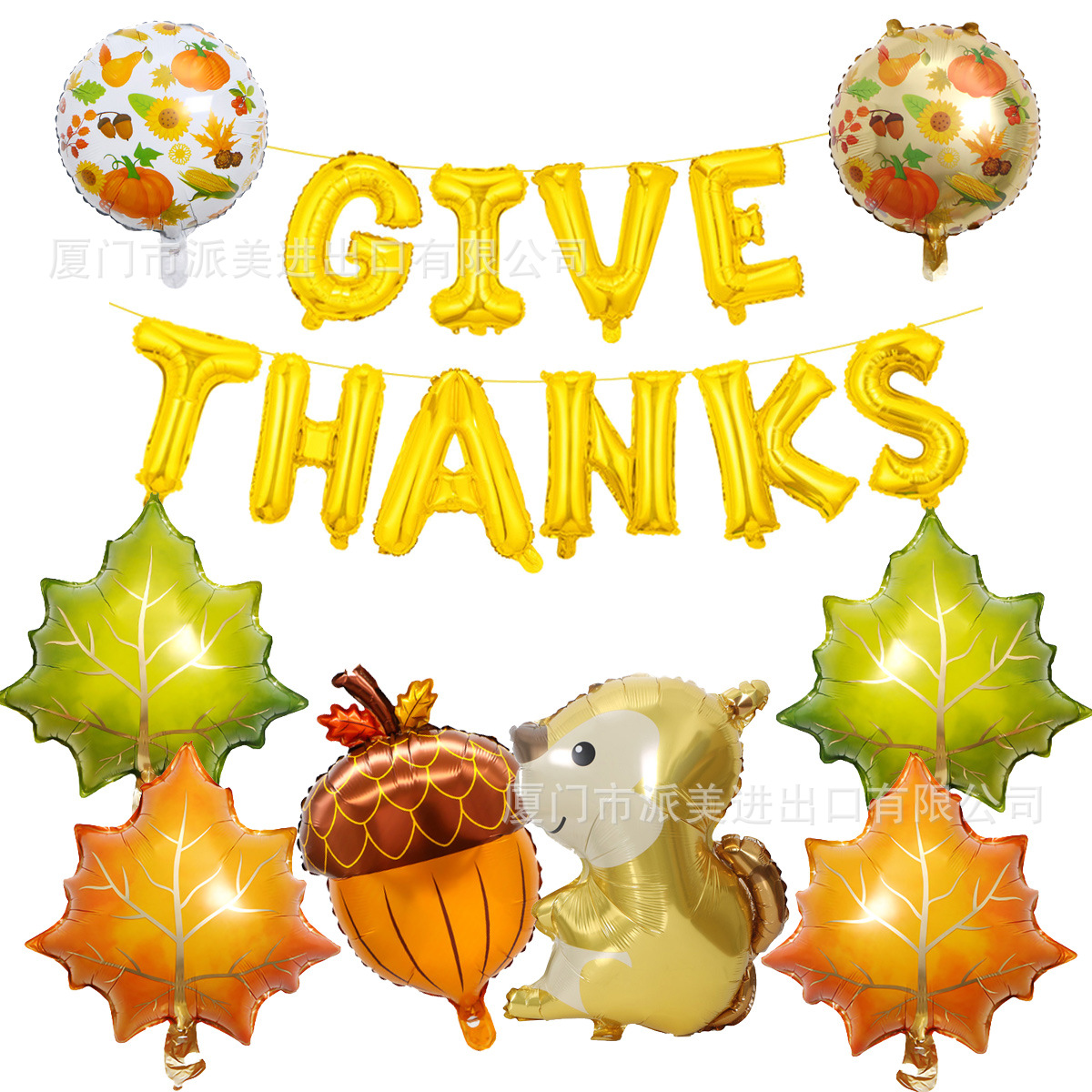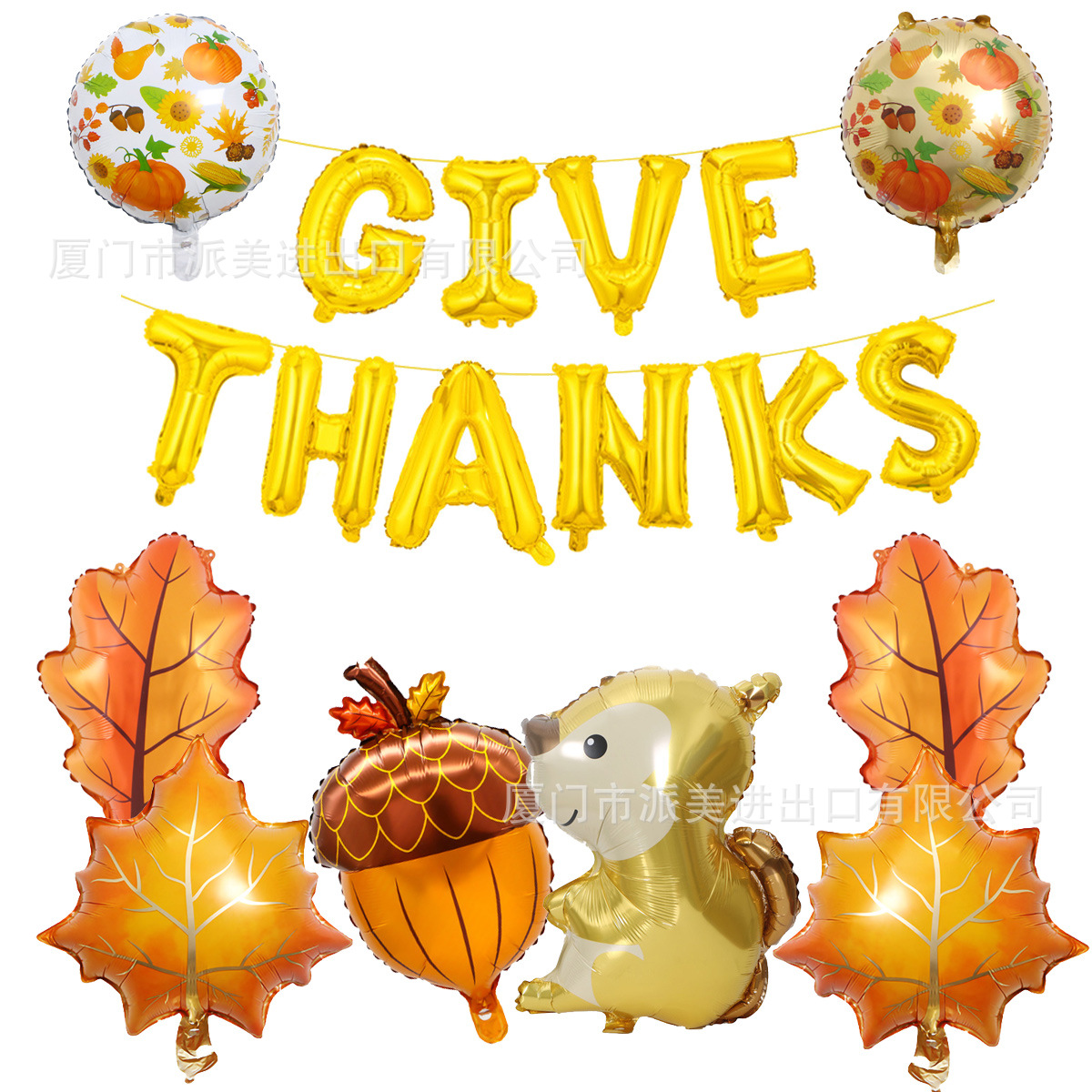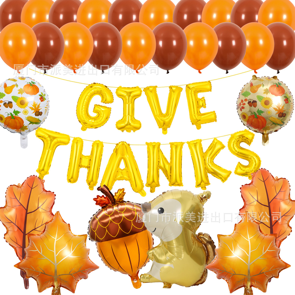 국경 간 추수 감사절 테마 파티 장식 세트 메이플 리프 너트 다람쥐 곰 알루미늄 필름 풍선 배경 레이아웃스토어 가기