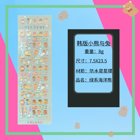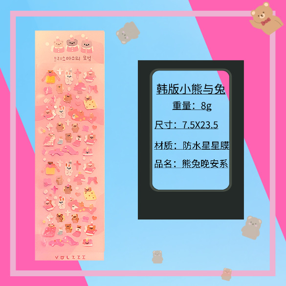 의 한국어 버전 장 곰 토끼 레이저 구 카드 스티커 귀여운 바람_스티커 만화 귀여운 소재 A11스토어 가기
