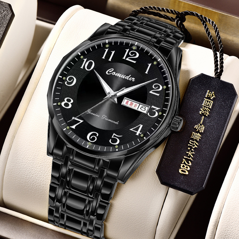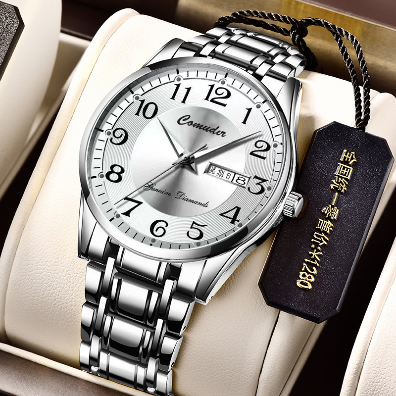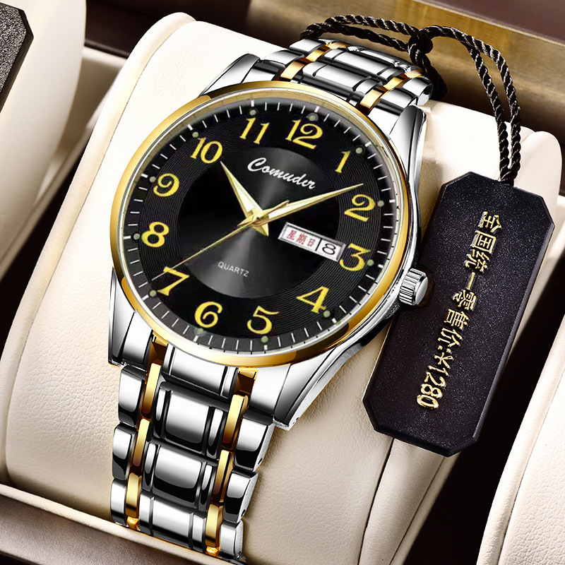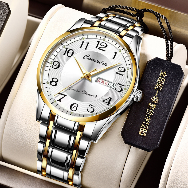 도매 시계 남성용 더블 캘린더 방수 쿼츠 시계 빛나는 비즈니스 국경 간 대외 무역 신제품의 세대를 떨쳐
