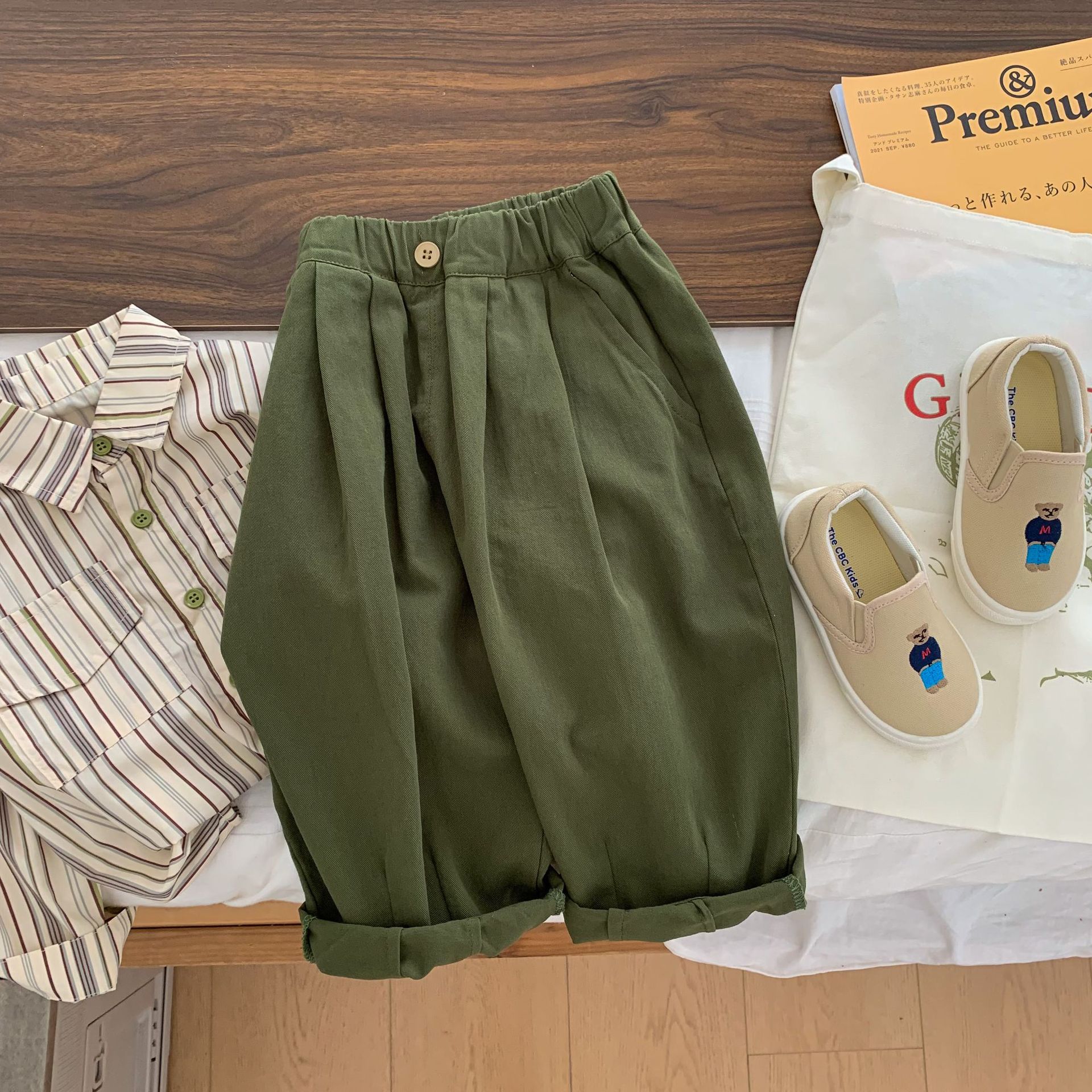 아동 바지 2025 Bangcheng 가을 신제품 남성 및 여성 육군 녹색 캐주얼 바지 아기 워시 코튼 바지 C0203