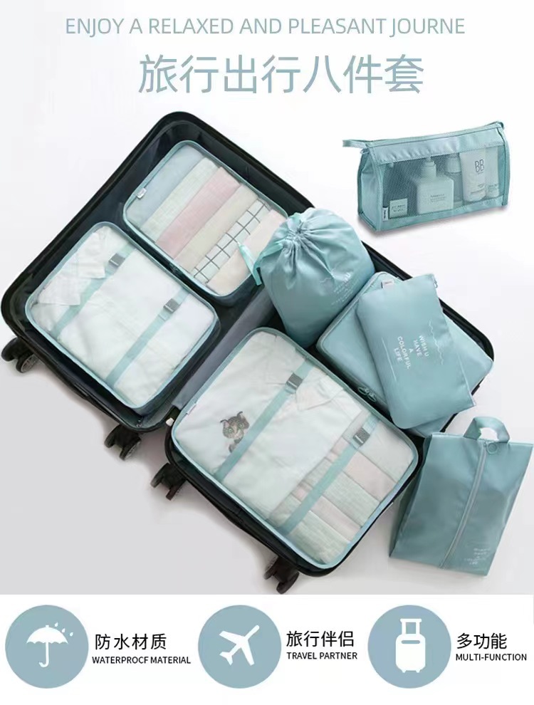 국경 간 여행용 짐 정리 가방, 옷 8종 세트, 방수 의류 분류 휴대용 가방