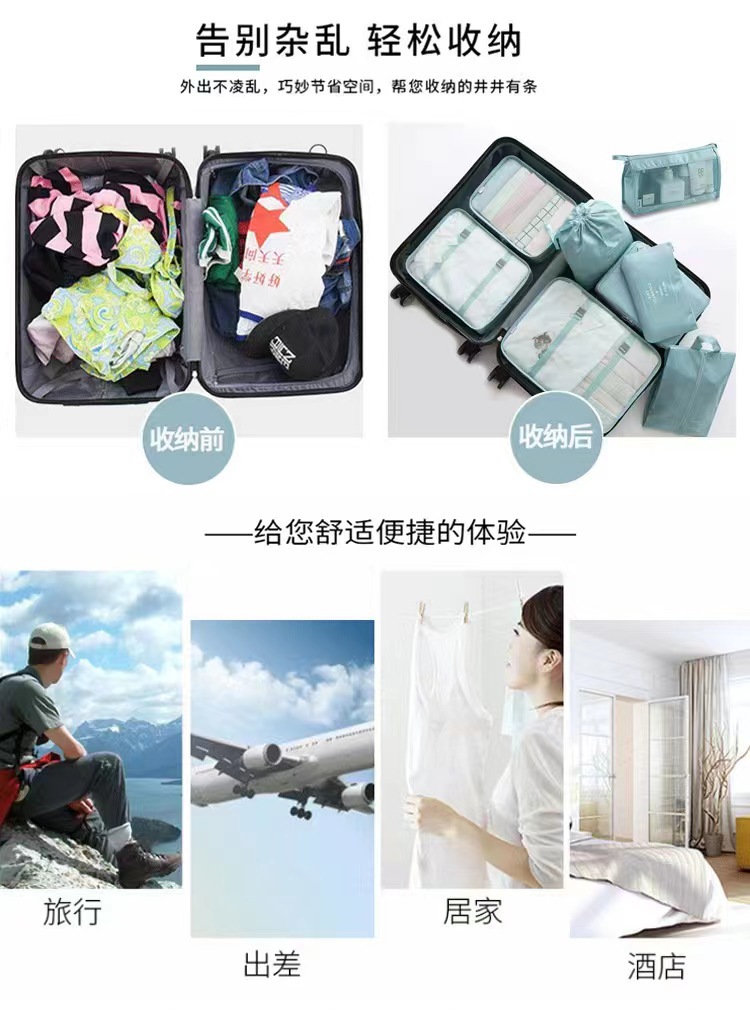 국경 간 여행용 짐 정리 가방, 옷 8종 세트, 방수 의류 분류 휴대용 가방스토어 가기