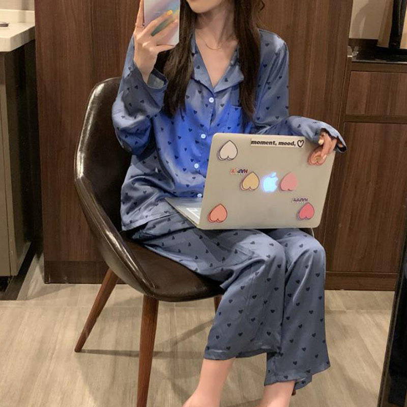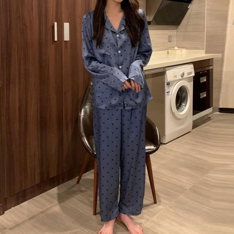 2025 잠옷 여성 스타일 달콤한 사랑 잠옷 긴 소매 숙녀 홈웨어 실크 잠옷 세트 도매스토어 가기