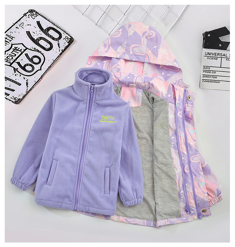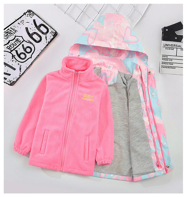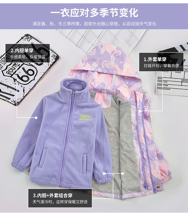 여아 코트 봄, 가을 2025 신상 아동 재킷 3-in-1 탈착식 벨벳 두꺼운 여아 가을 의류스토어 가기