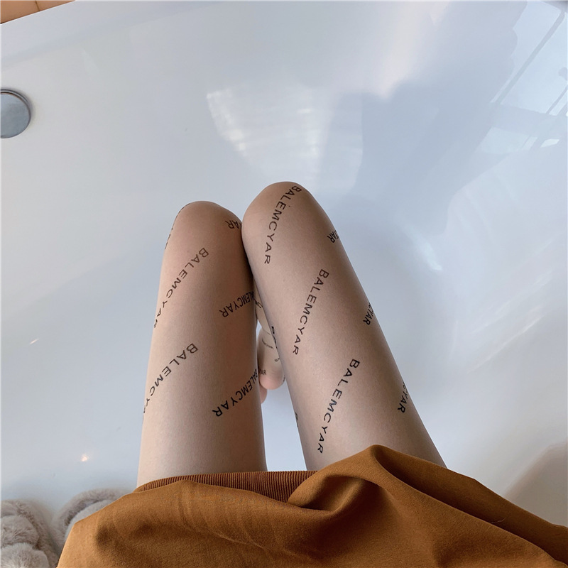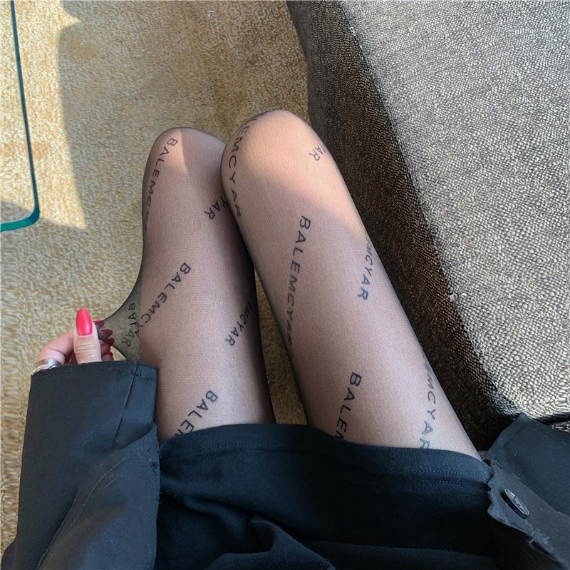 레터 블랙 실크 스타킹 여성의 봄과 가을 2022 새로운 온라인 인기있는 얇은 양말 레이스 유행 원피스 팬티 스타킹