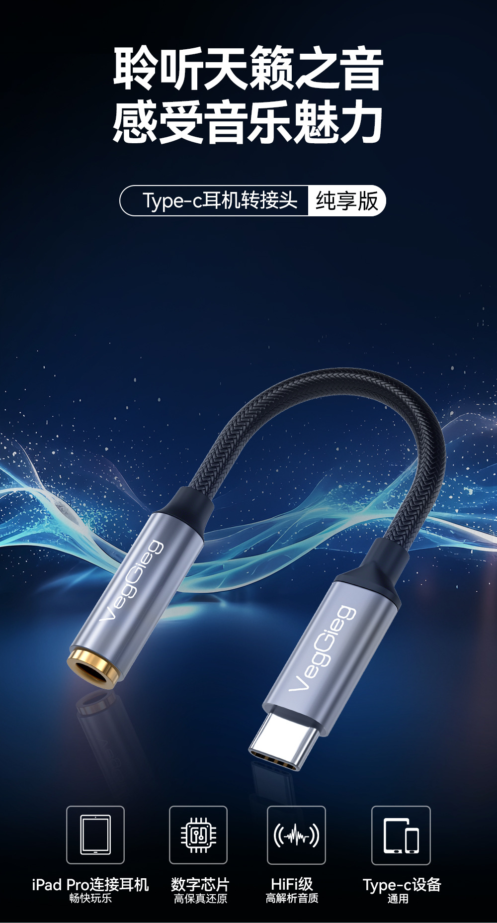 웨이게 타입-C에서 3.5mm 오디오 어댑터로 변환, 애플 15/16 휴대폰 디지털 음성 변환 케이블
