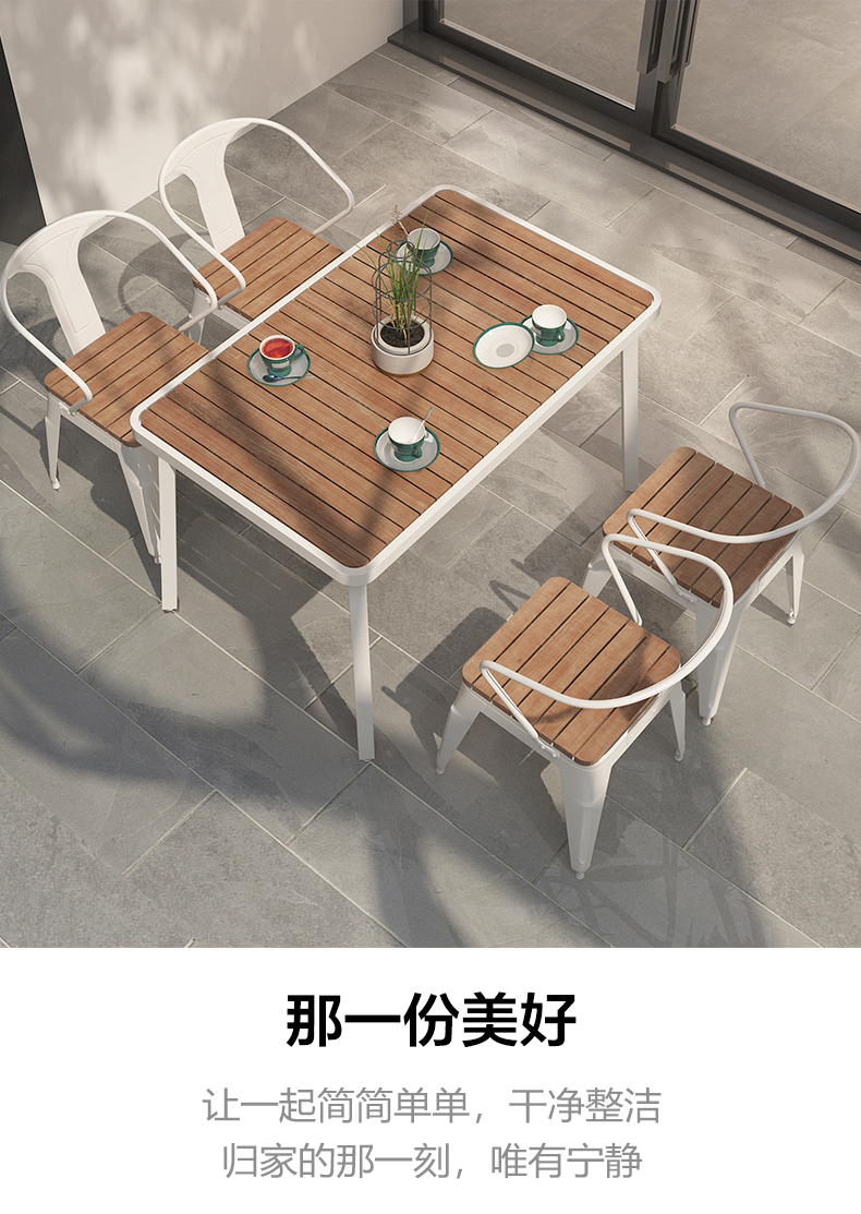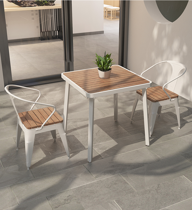 야외 테이블과 의자 안뜰 야외 플라스틱 나무 야외 테이블 간단한 빌라 가든 발코니 레저 도어 테이블과 의자 조합