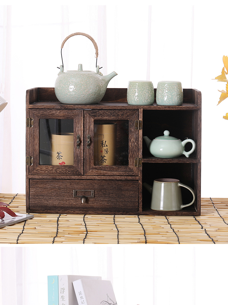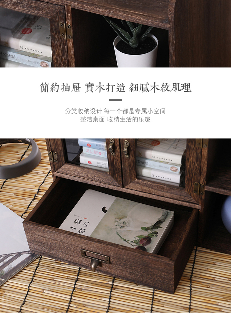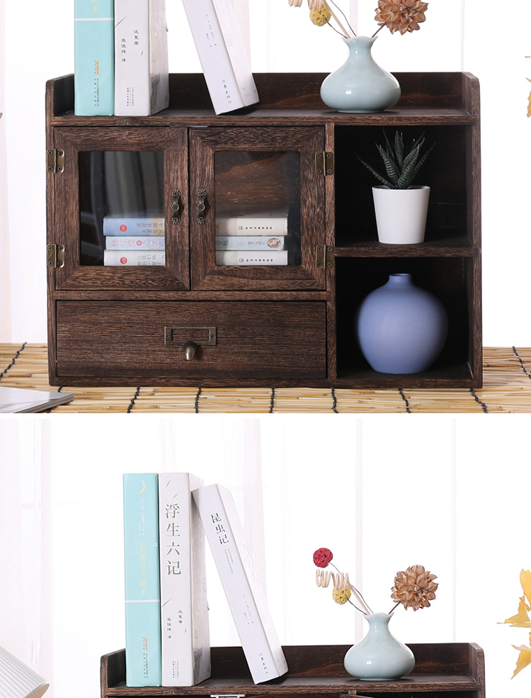 데스크탑 스토리지 박스 세 서랍 사무실 박스 데스크탑 스토리지 랙 단단한 나무 스토리지 캐비닛 화장품 책장 책장 오픈 도어스토어 가기