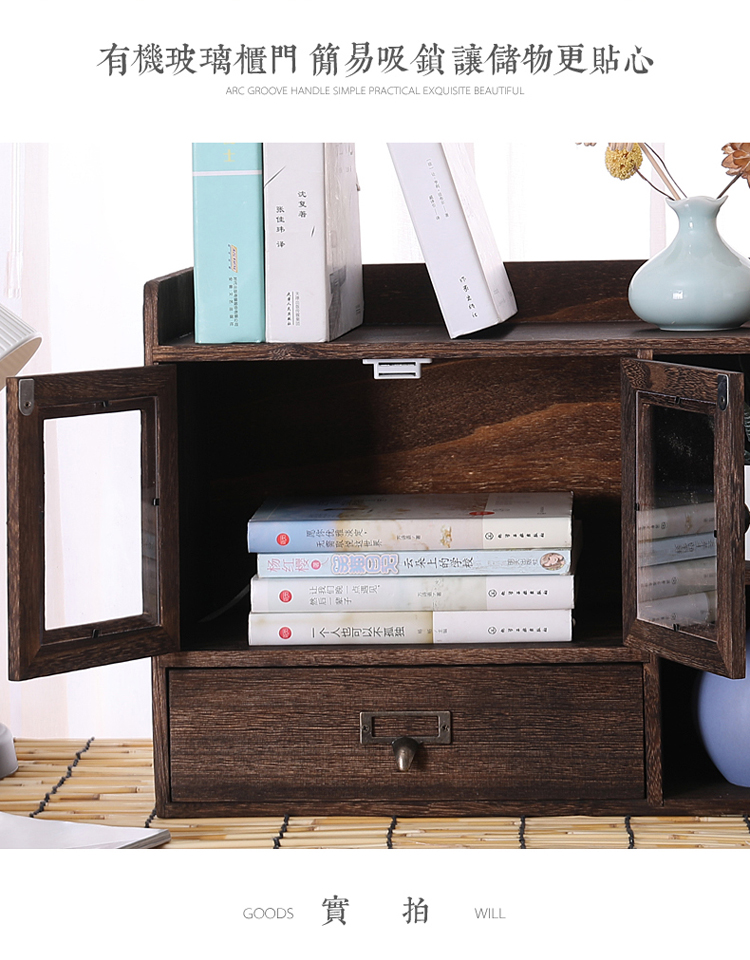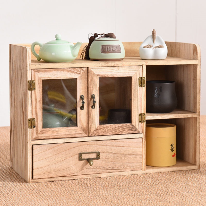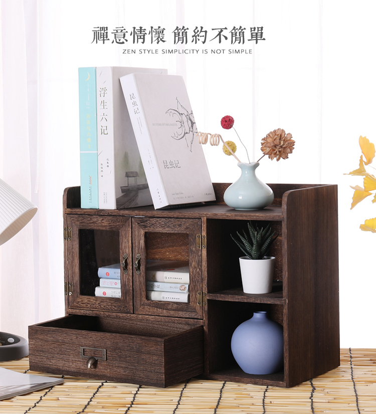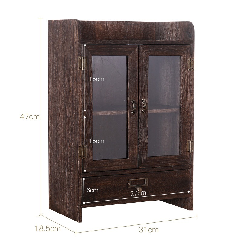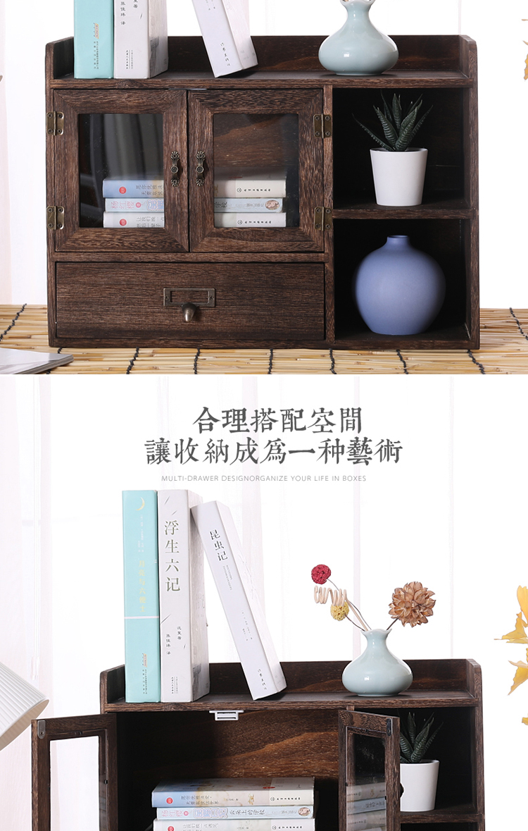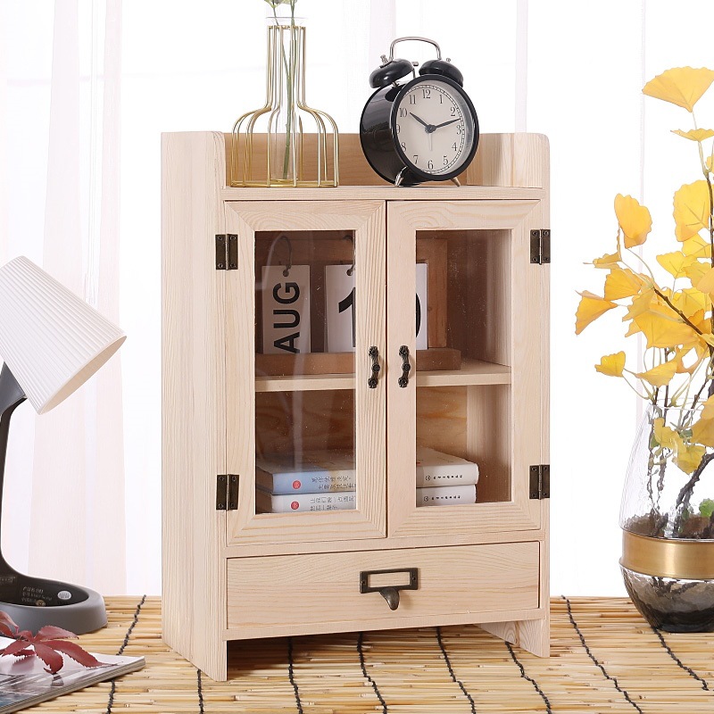 데스크탑 스토리지 박스 세 서랍 사무실 박스 데스크탑 스토리지 랙 단단한 나무 스토리지 캐비닛 화장품 책장 책장 오픈 도어