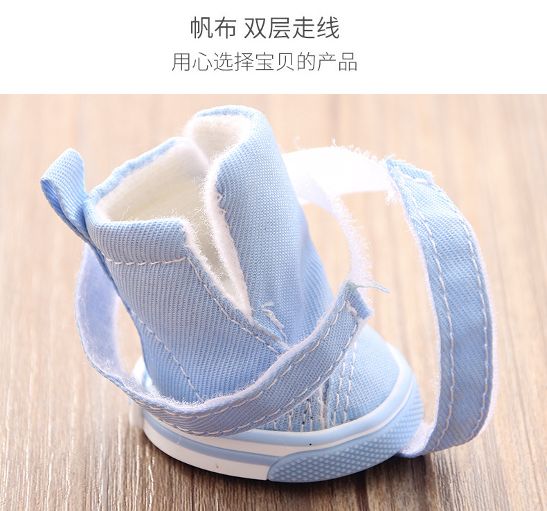 작은 개 신발 겨울 작은 떨어 뜨릴 수 없습니다 테디 곰 애완 동물 가을 발 미끄럼 방지 캔버스 신발보다 4 세트
