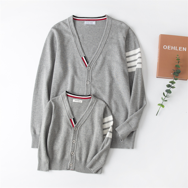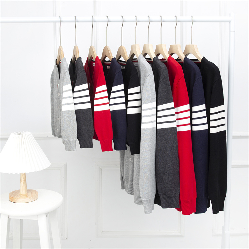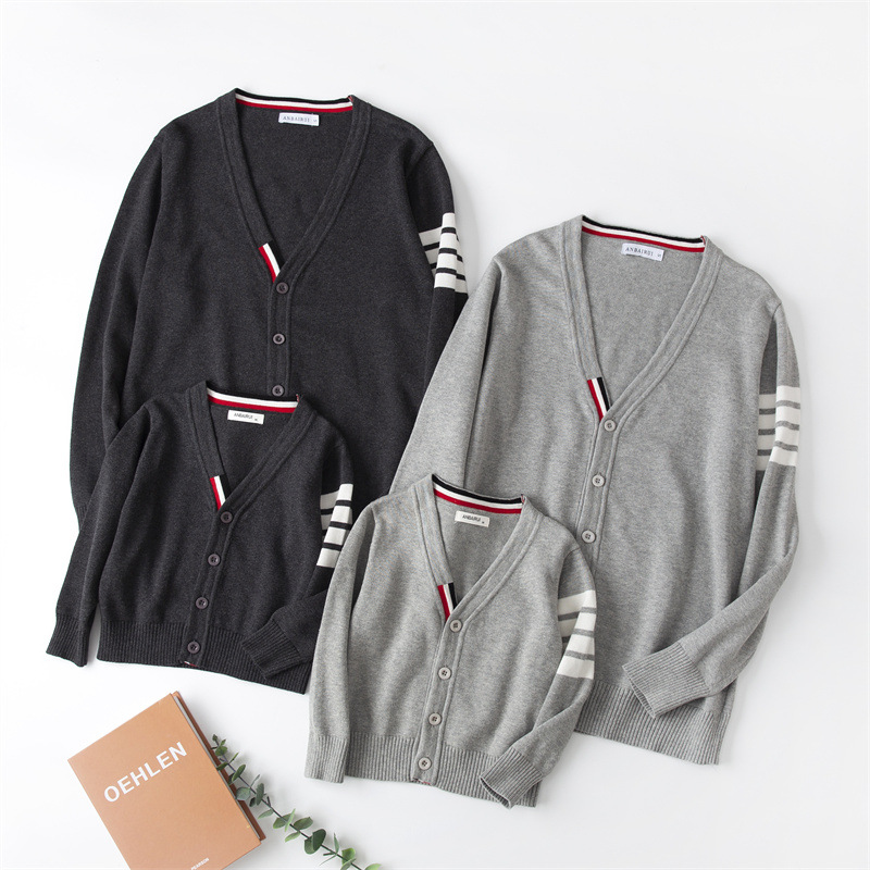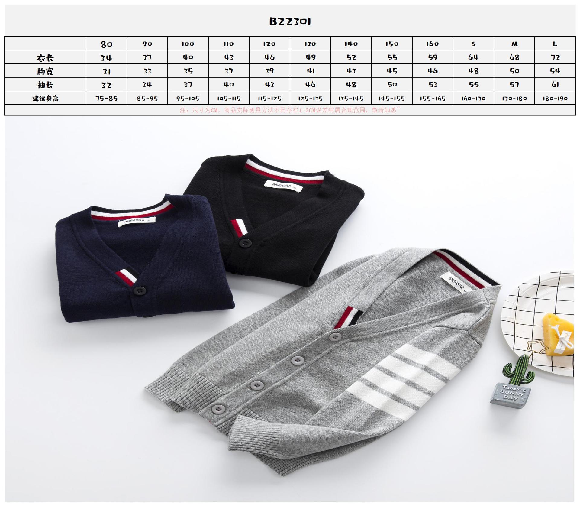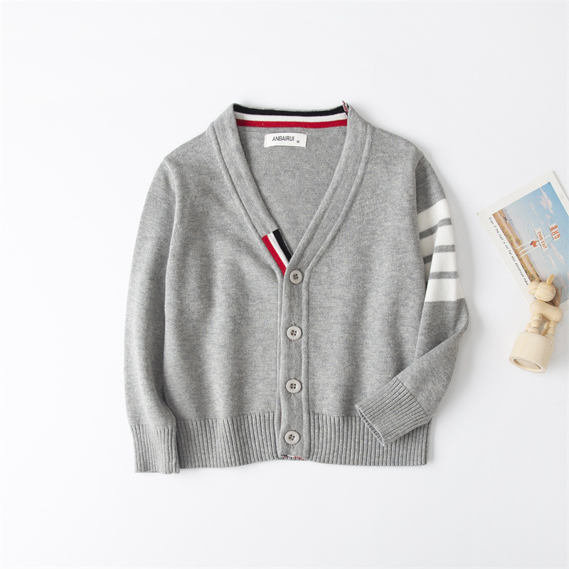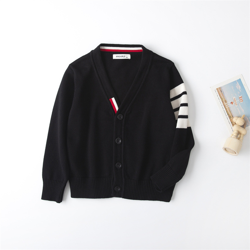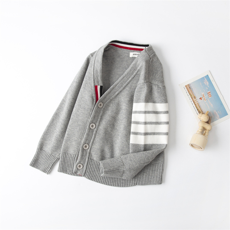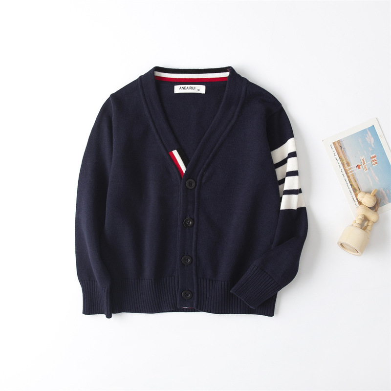 재고 있음: 안바이루이 가을 유럽 및 미국 스타일 유니섹스 아동용 스웨터, 단색 면 긴팔 V넥 스트라이프, 다용도 유럽 및 미국 스타일스토어 가기