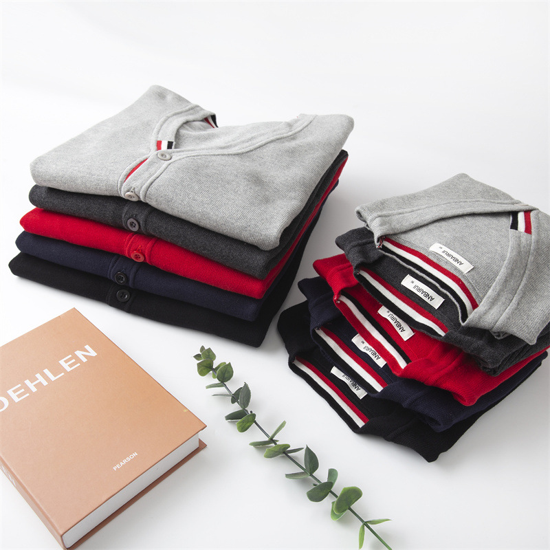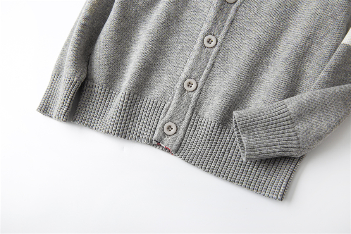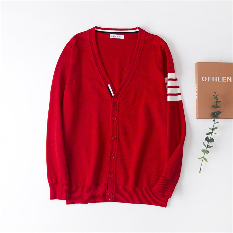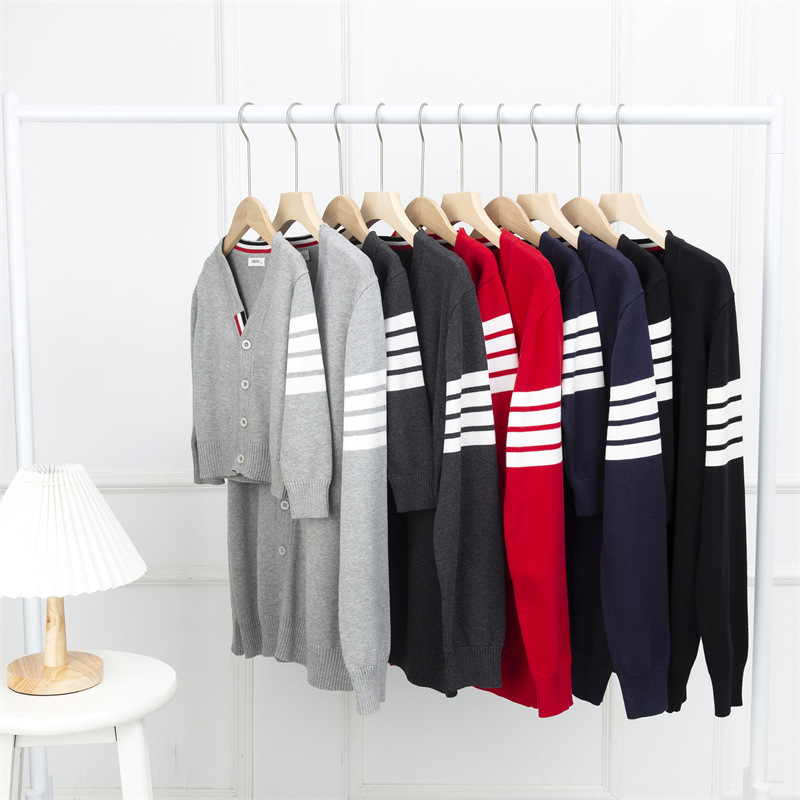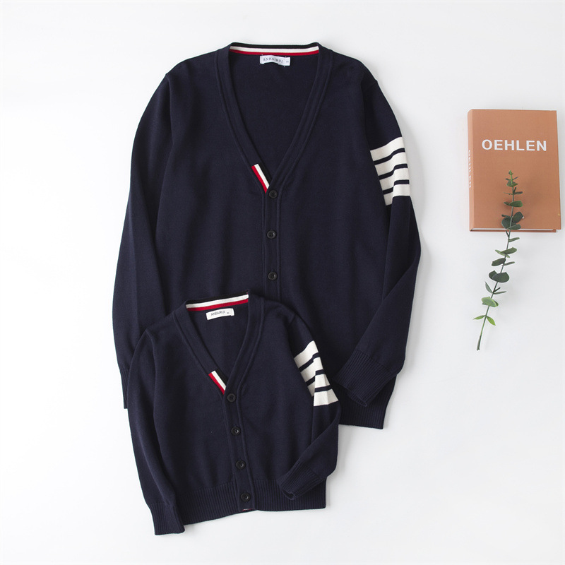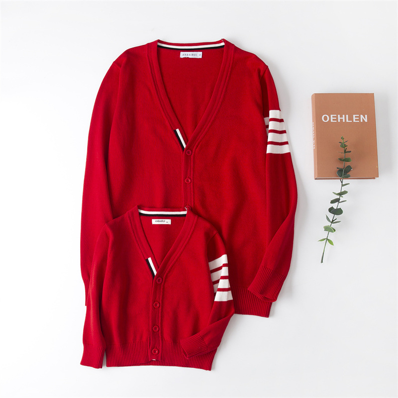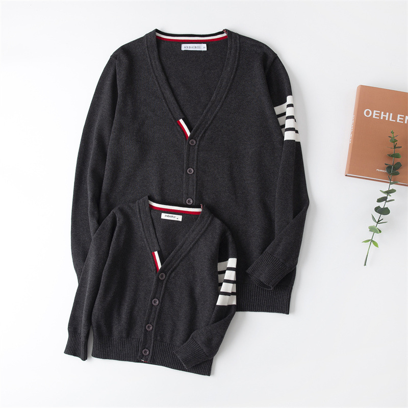 재고 있음: 안바이루이 가을 유럽 및 미국 스타일 유니섹스 아동용 스웨터, 단색 면 긴팔 V넥 스트라이프, 다용도 유럽 및 미국 스타일스토어 가기