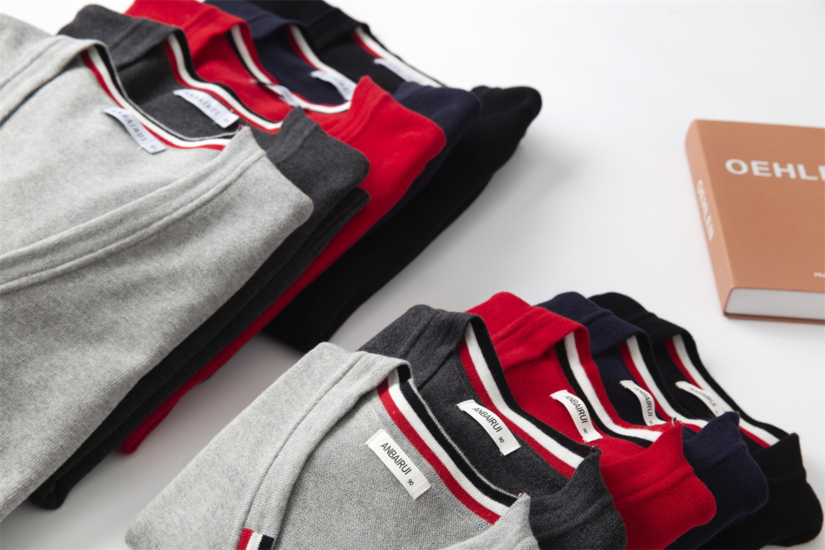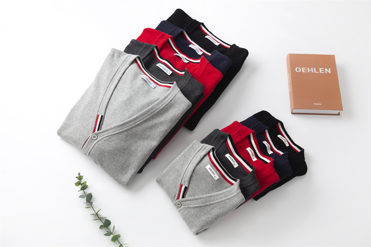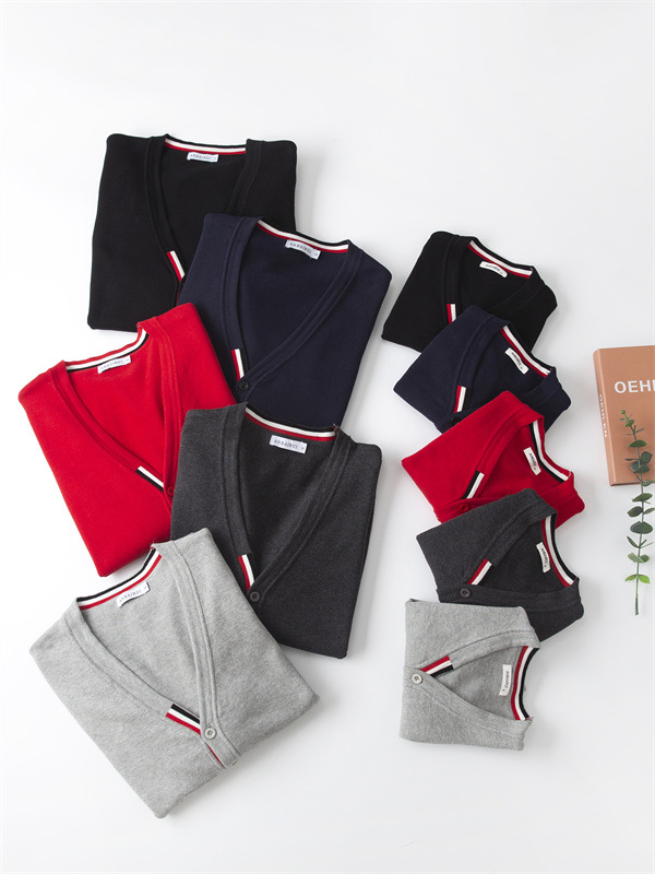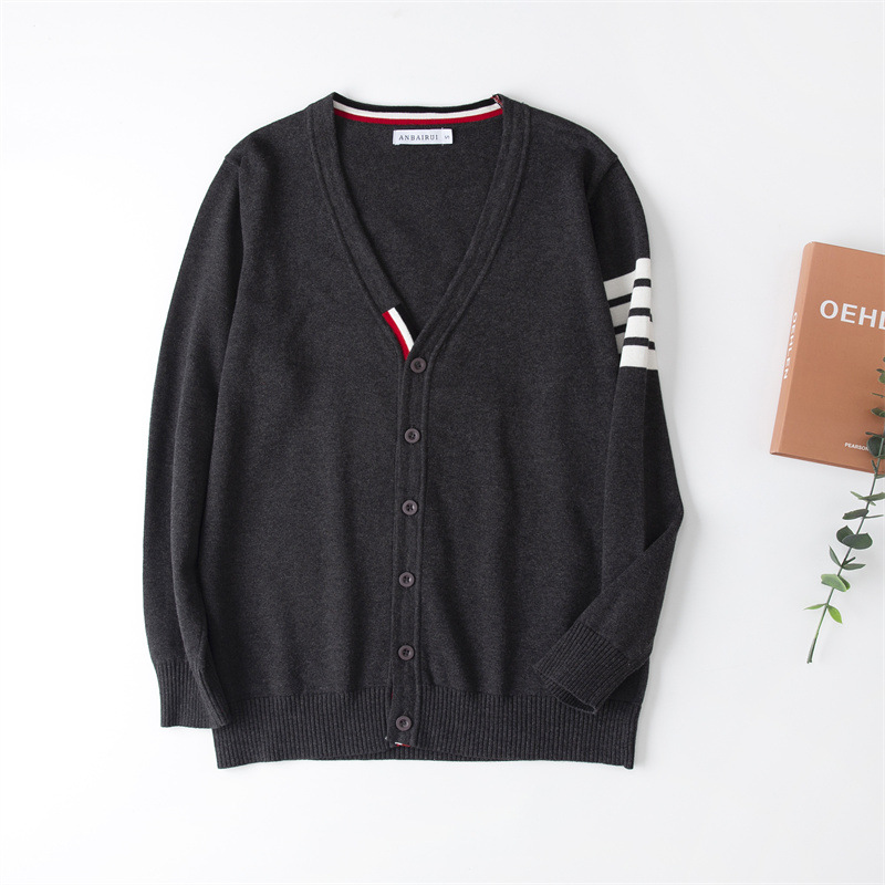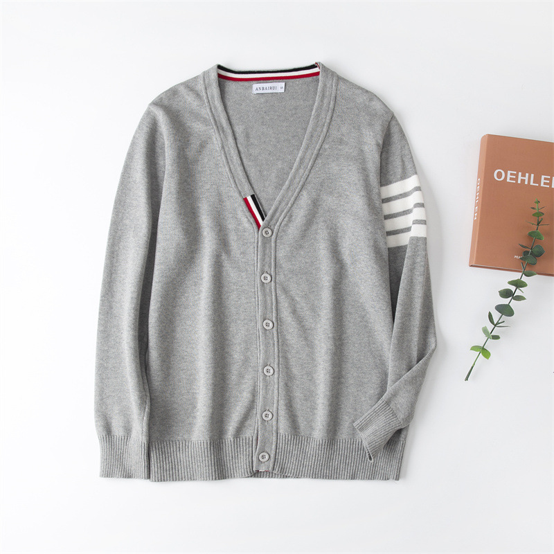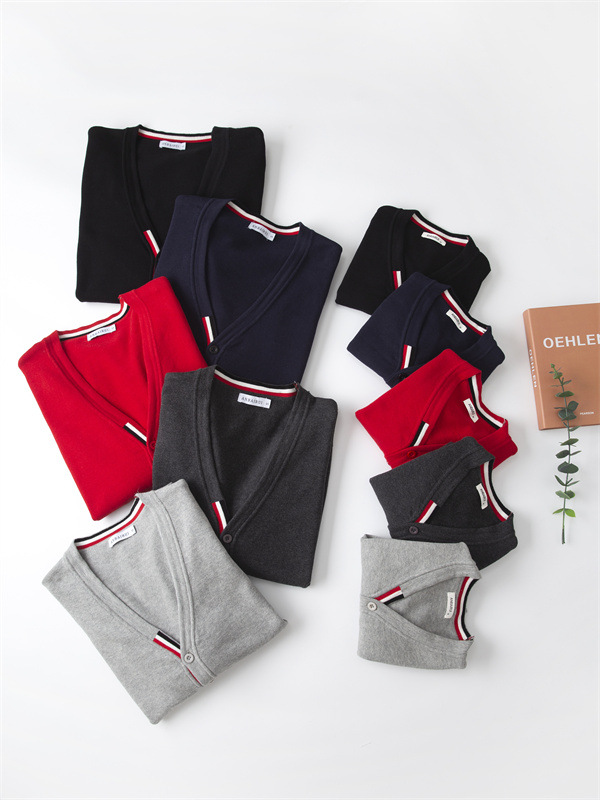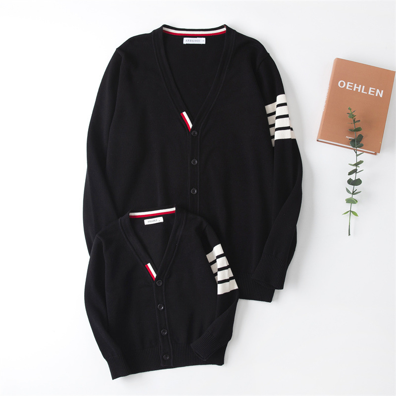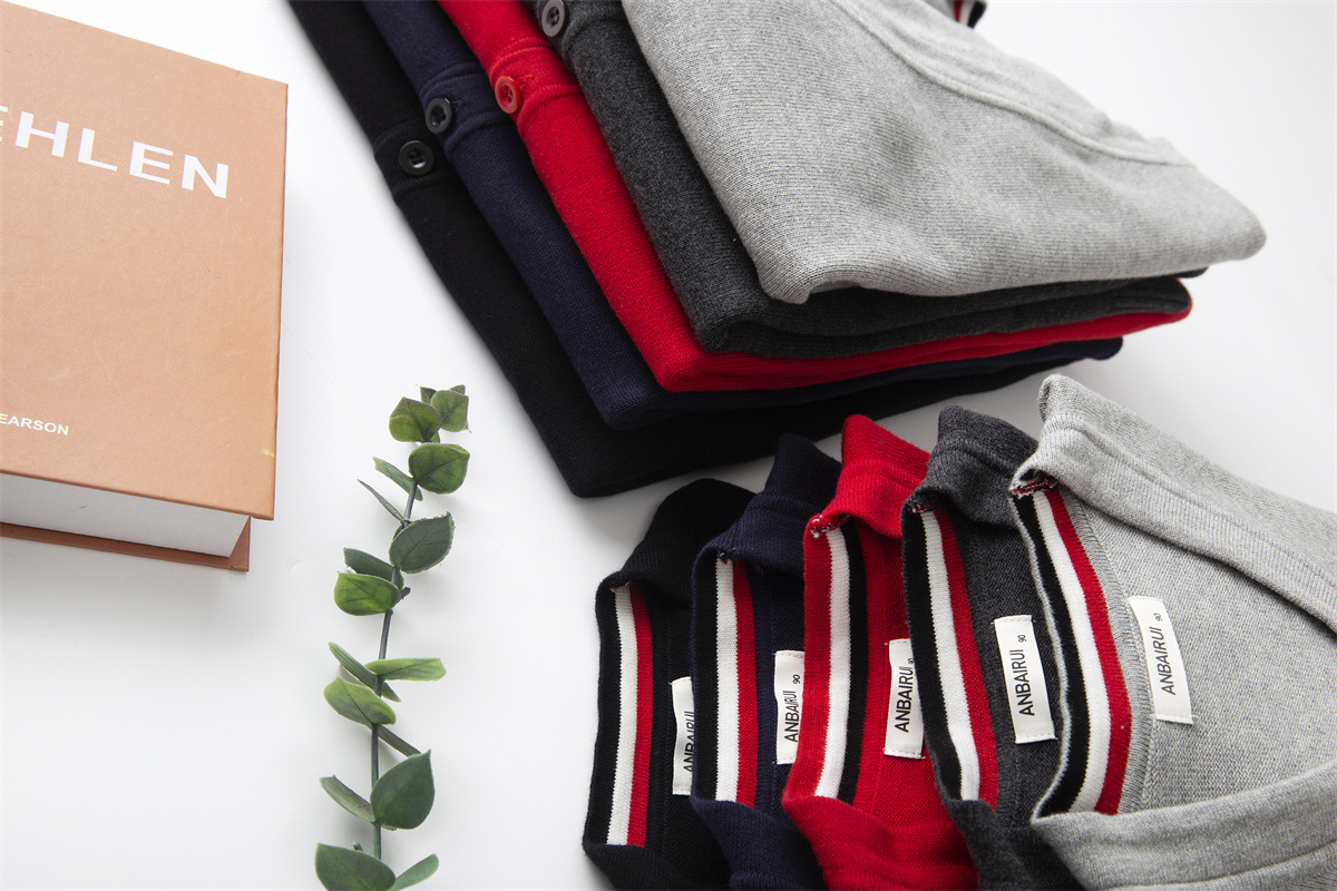 재고 있음: 안바이루이 가을 유럽 및 미국 스타일 유니섹스 아동용 스웨터, 단색 면 긴팔 V넥 스트라이프, 다용도 유럽 및 미국 스타일스토어 가기