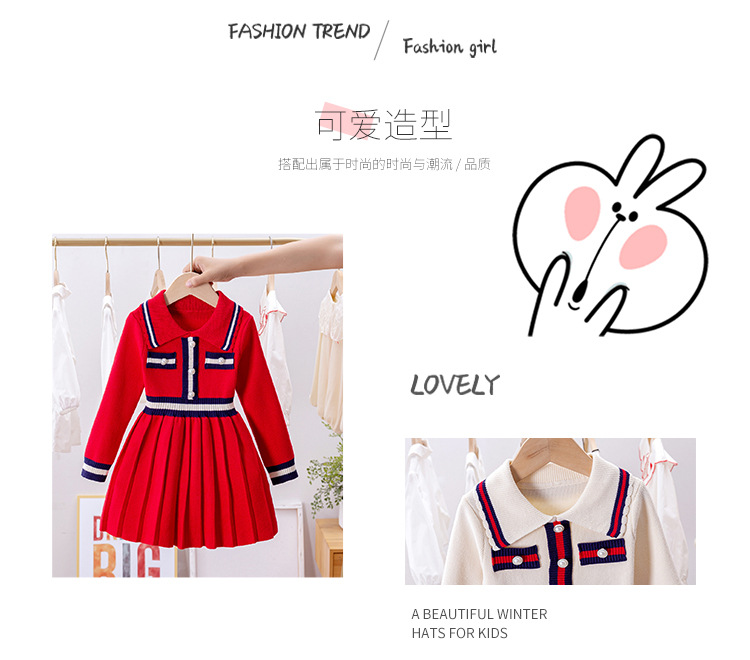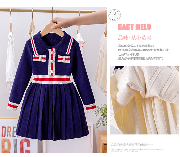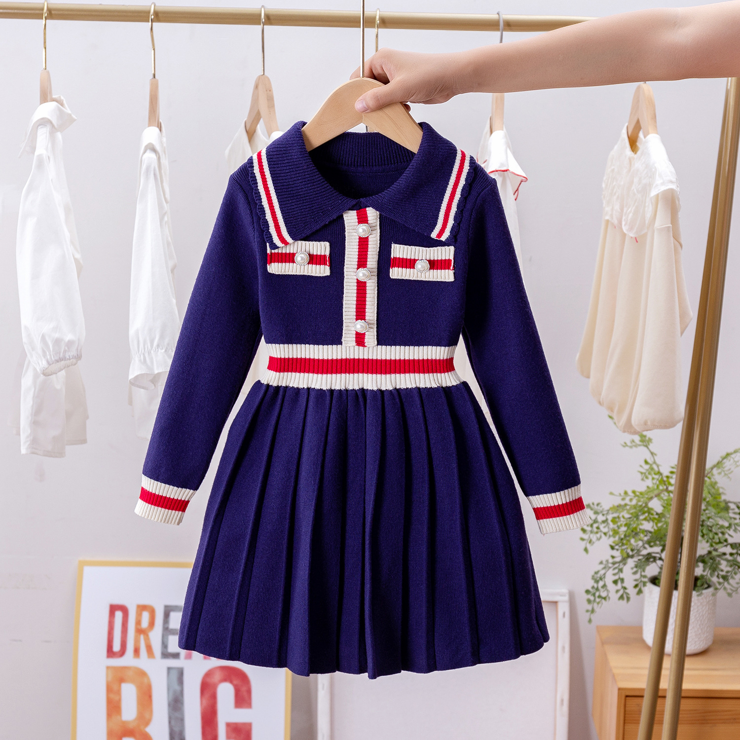 여아 스웨터 드레스 2025 컬리지 스타일 아동 니트 원피스 패셔너블한 아동복 작은 프린세스 드레스