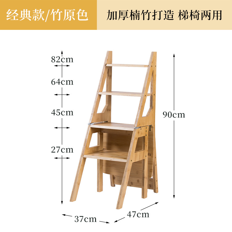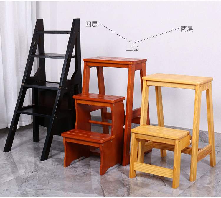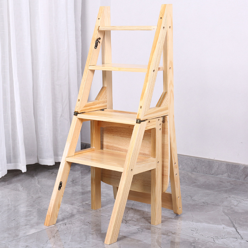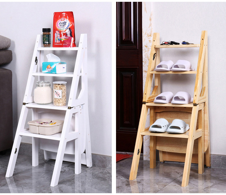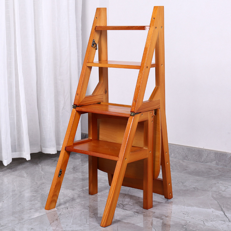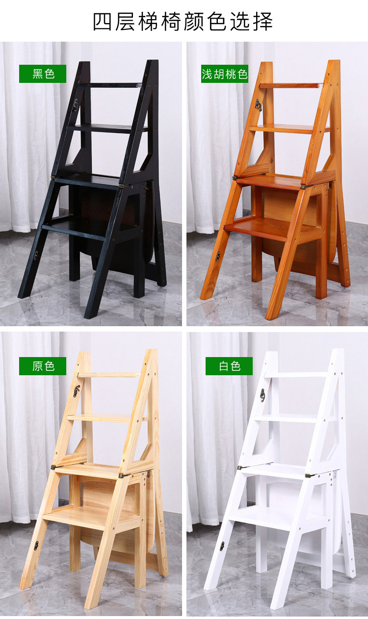 단단한 나무 가정용 다기능 접이식 사다리 의자 헤링본 사다리 의자 실내 등산 사다리 이중 사용 4 단 사다리 스툴 도매스토어 가기
