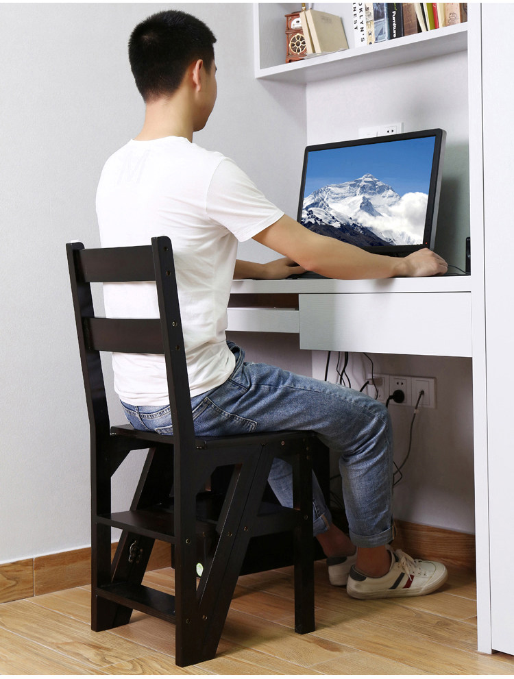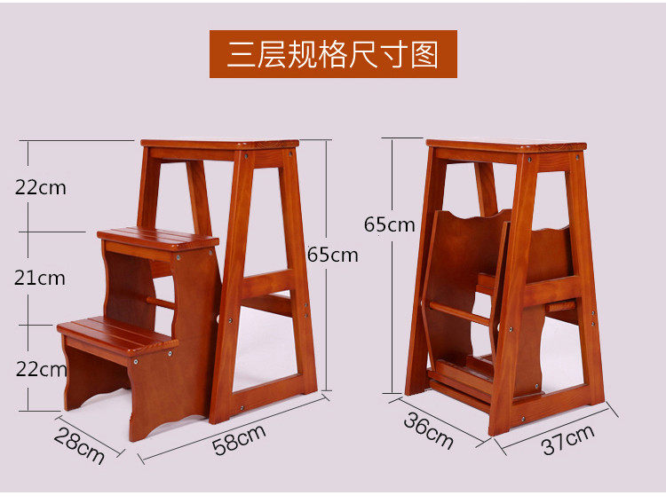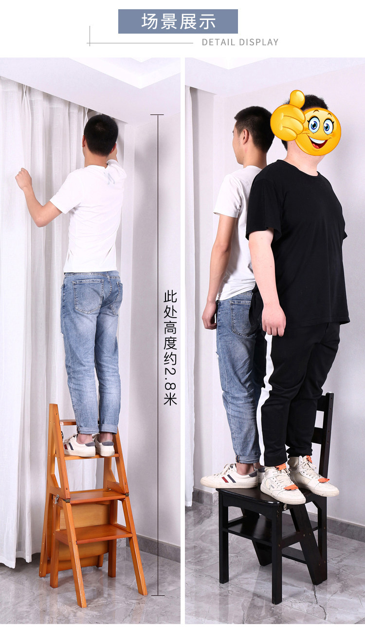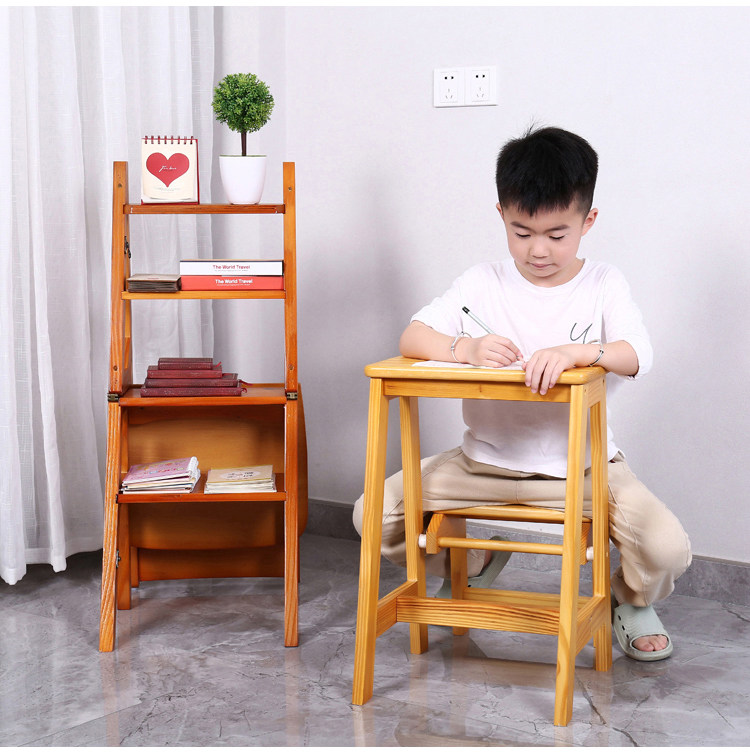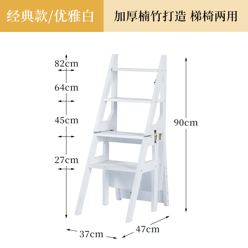 단단한 나무 가정용 다기능 접이식 사다리 의자 헤링본 사다리 의자 실내 등산 사다리 이중 사용 4 단 사다리 스툴 도매스토어 가기