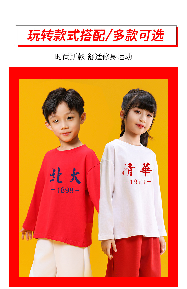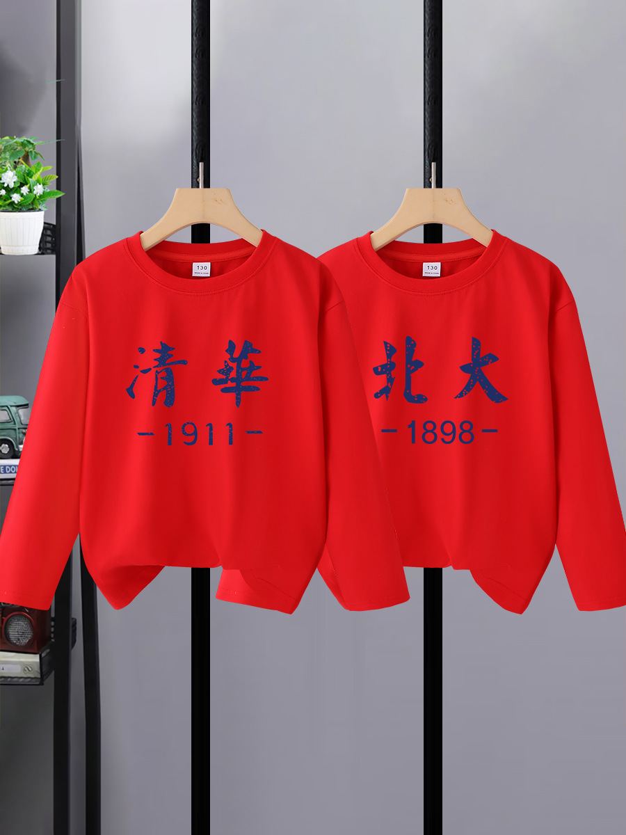 청화 북경 대학 어린이 긴팔 티셔츠 얇은 면 남아 가을 옷 겉옷 입고 봄 가을 여아 베이스 셔츠