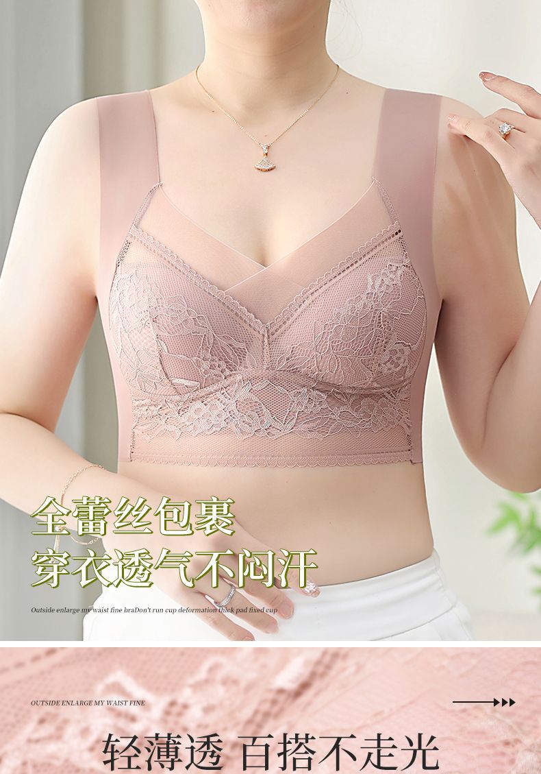 여름 새로운 스타일 레이스 백 속옷 원피스 원활한 랩 업 없음 스틸 링 처짐 방지 플러스 사이즈 브래지어 속옷 여성용스토어 가기