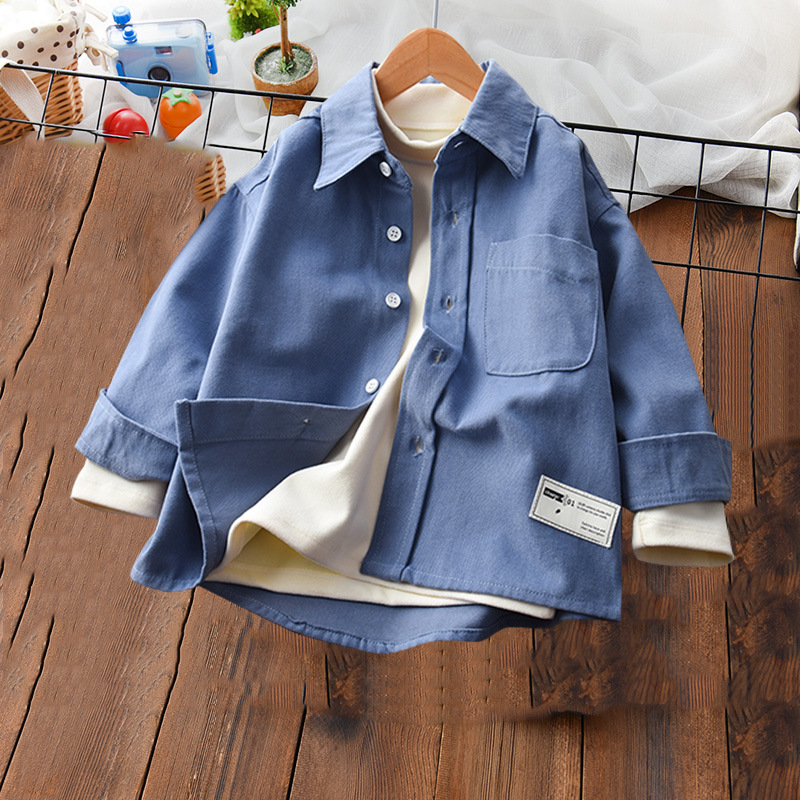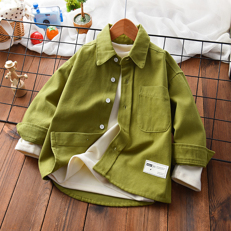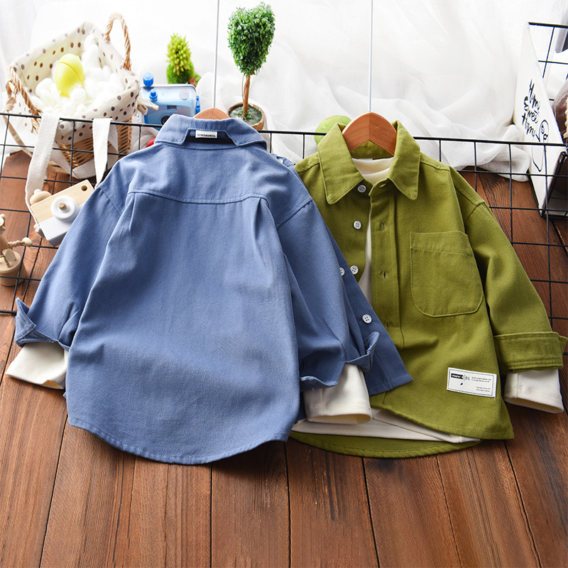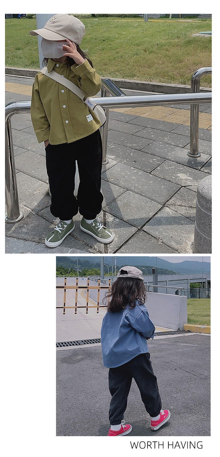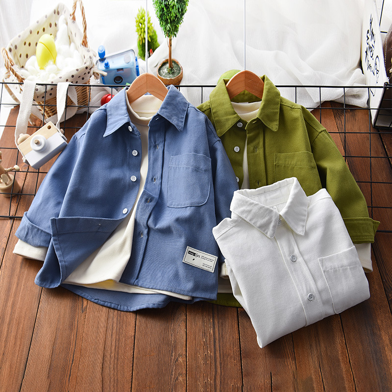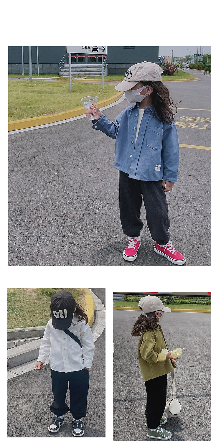 아동 코트 2024 봄 여름 새로운 스타일 남성과 여성의 단색 셔츠 한국 스타일 패션 중대형 아동용 베이비 탑 트렌디스토어 가기