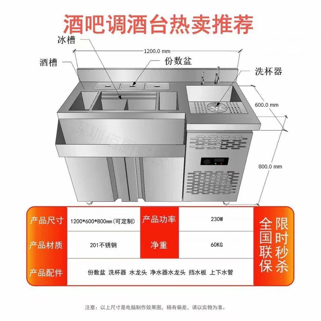 제조업체 도매 바 칵테일 카운터 냉장 작업대 워터바 작업대 상업용 스테인리스 와인 캐비닛 장비스토어 가기