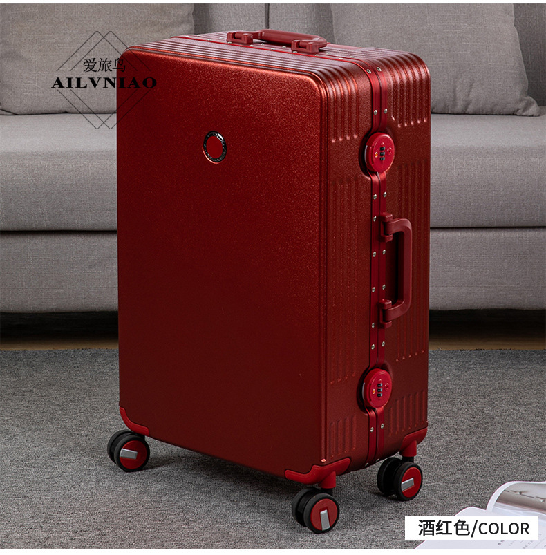 웨딩 수하물 지참금 상자 여성용 레드 트롤리 케이스 신부의 결혼식 여행 암호 상자 지참금 대용량 상자