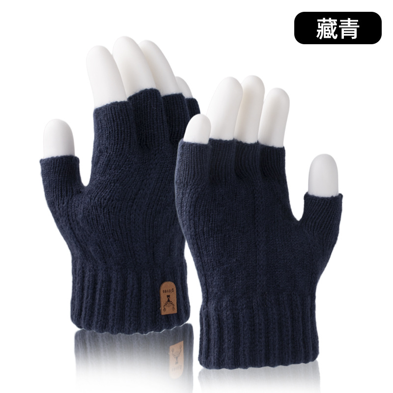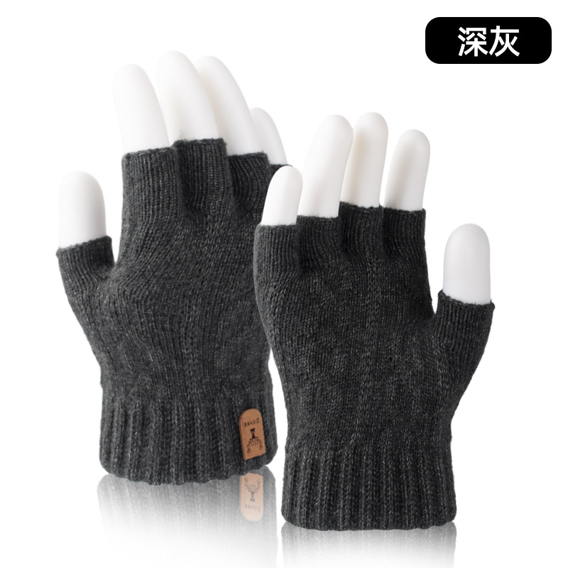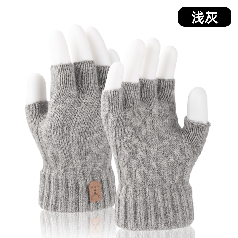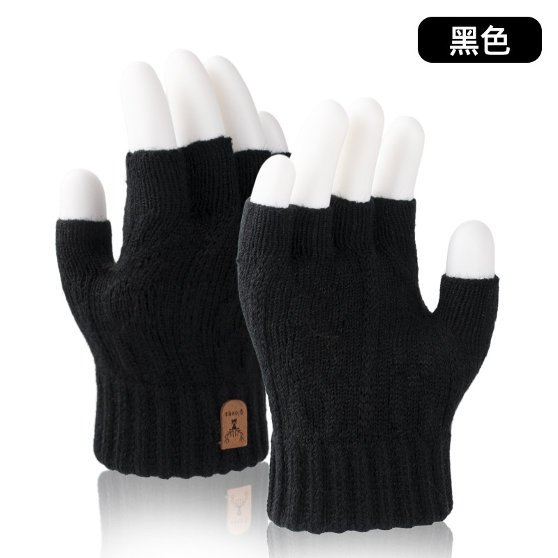 공장 직접 반 손가락 장갑 가을과 겨울 방한 따뜻한 기모 두꺼운 학생 반 니트 장갑 도매